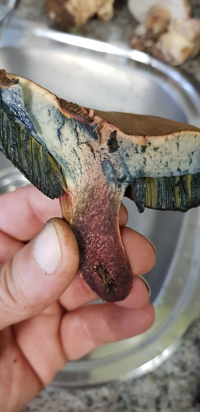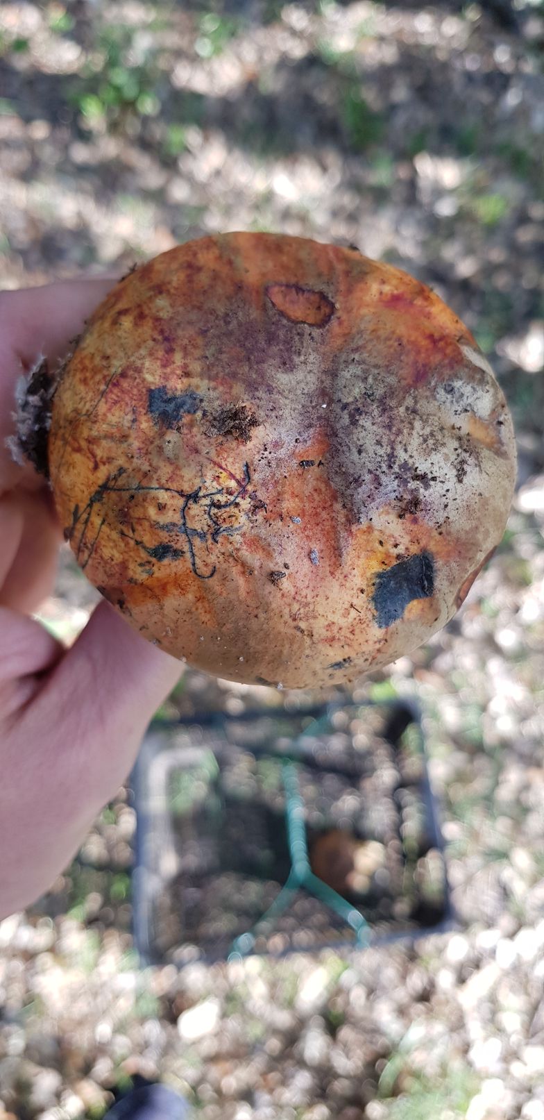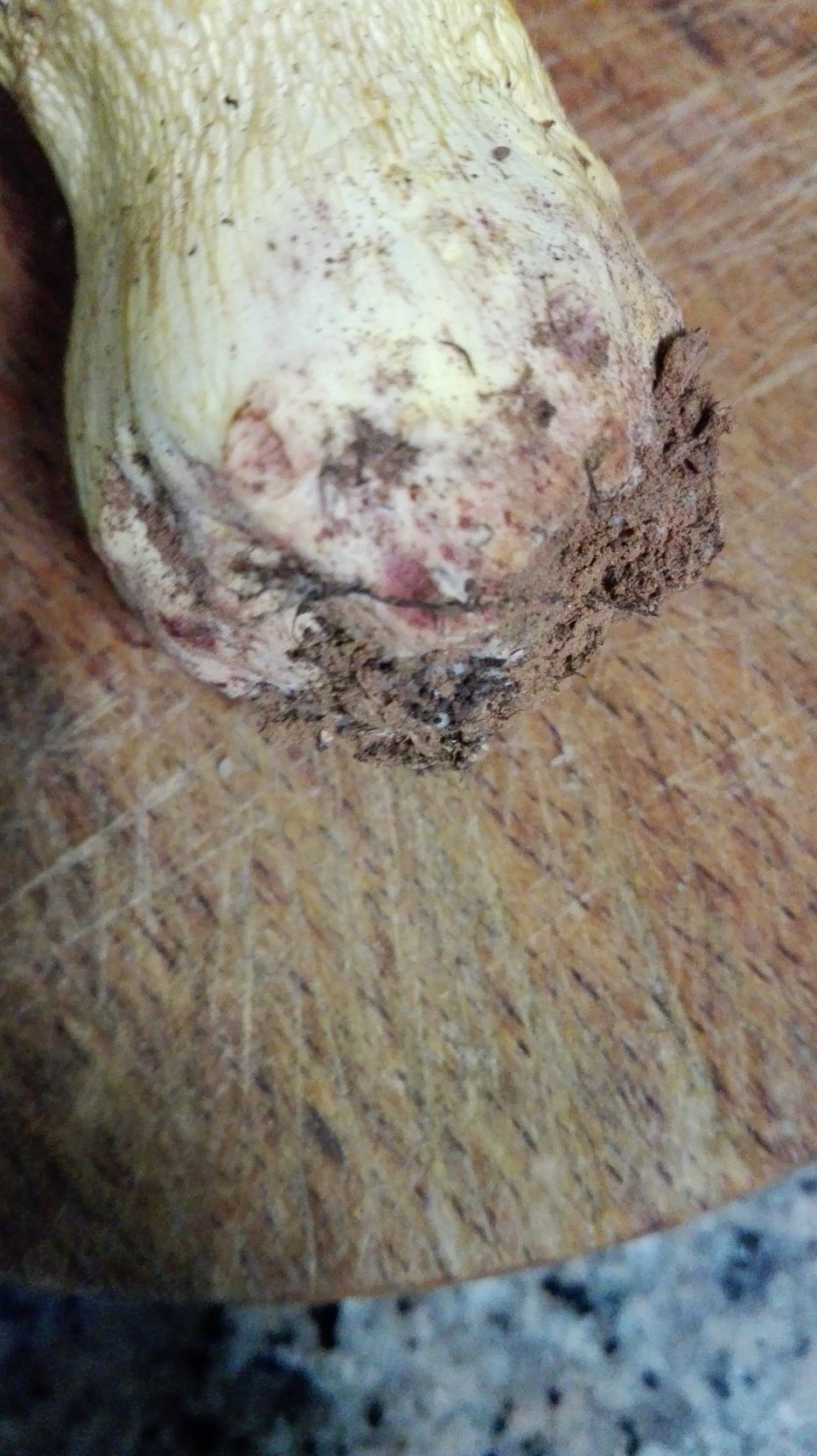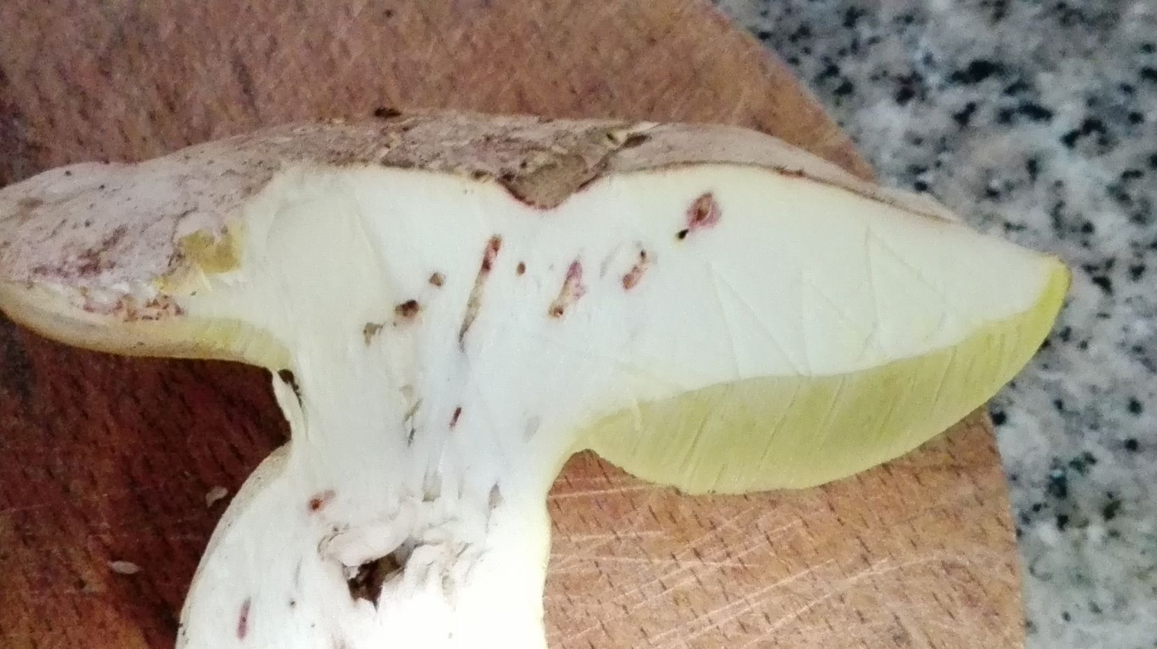 Estos ejemplares fueron recogidos bajo encinas y robles. Pienso que podría tratarse de erytropus pero como no lo tengo muy claro prefiero asegurarme. Como se puede ver azulean al corte y me llamó la tención que tras un buen rato vuelven a recuperar su color original.