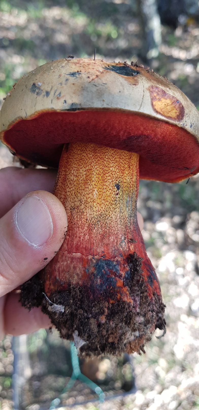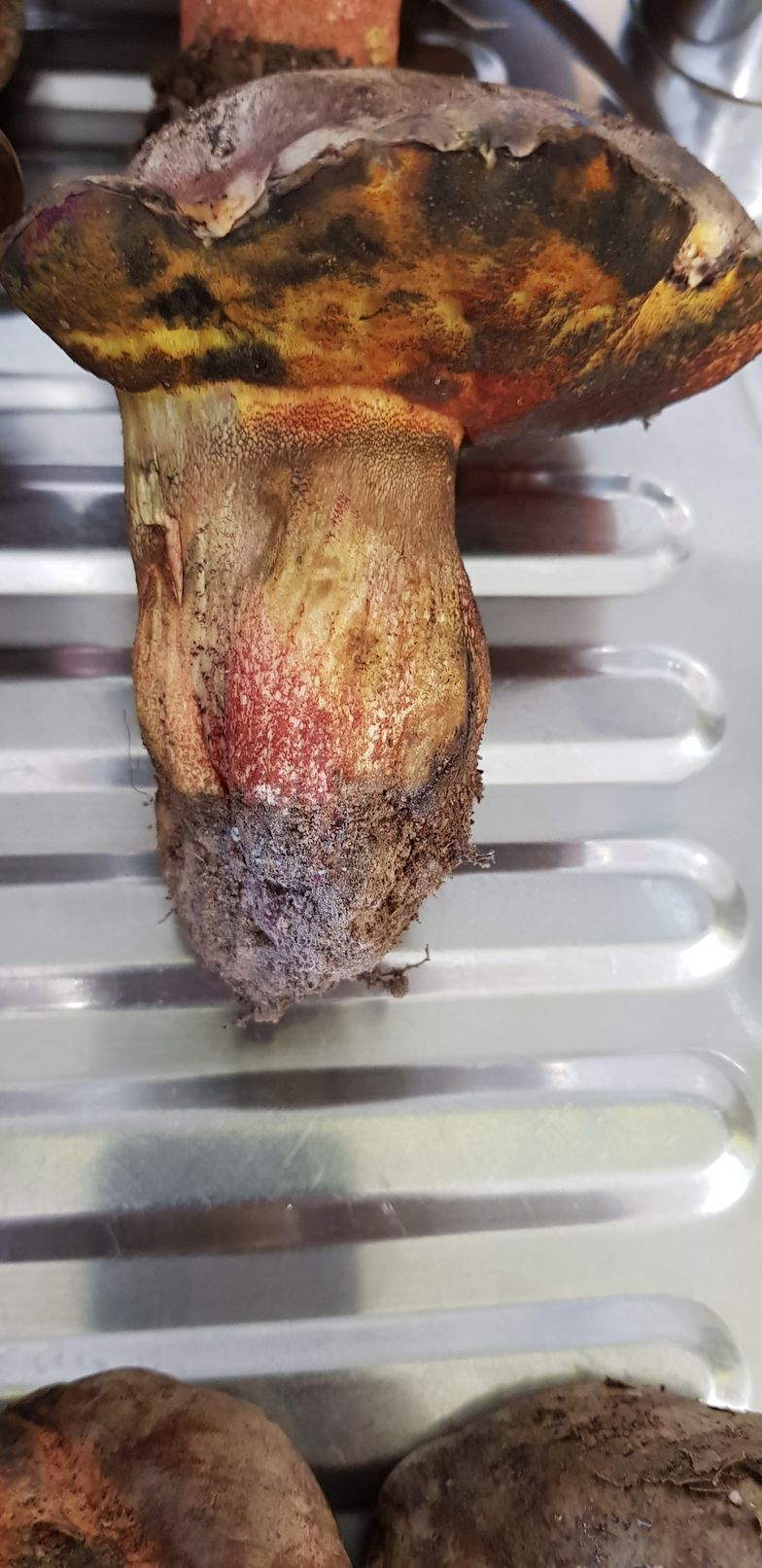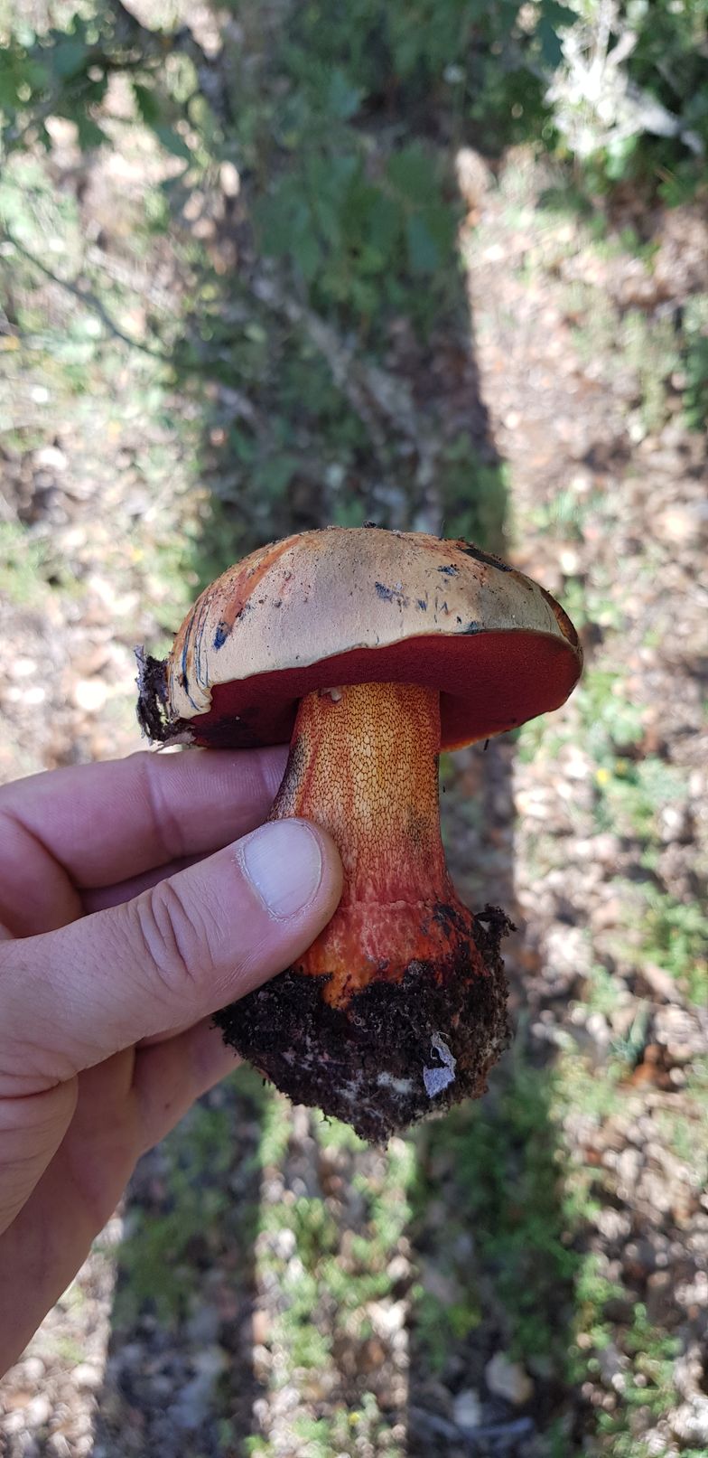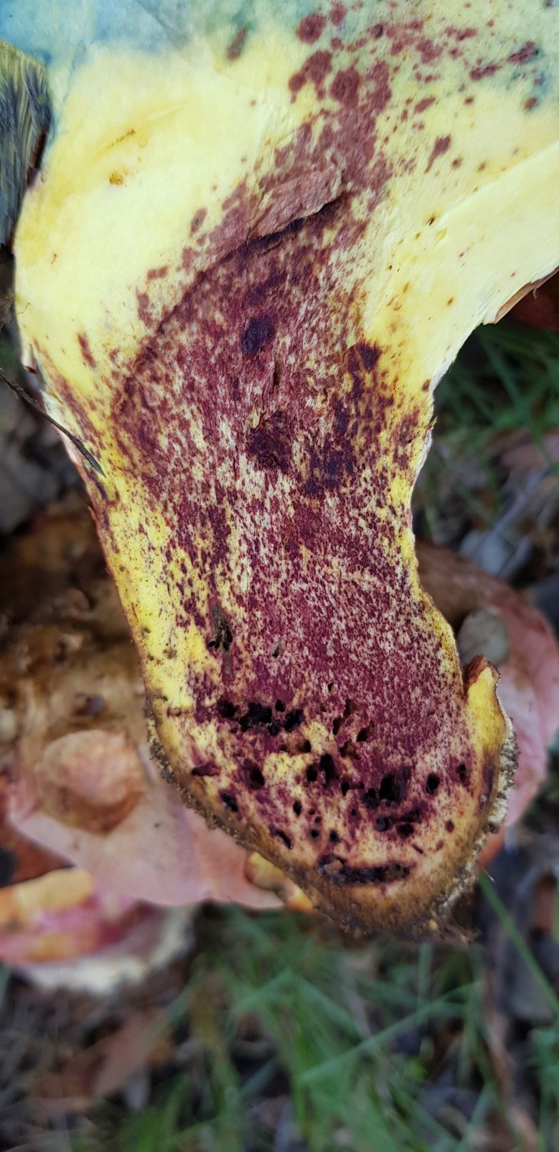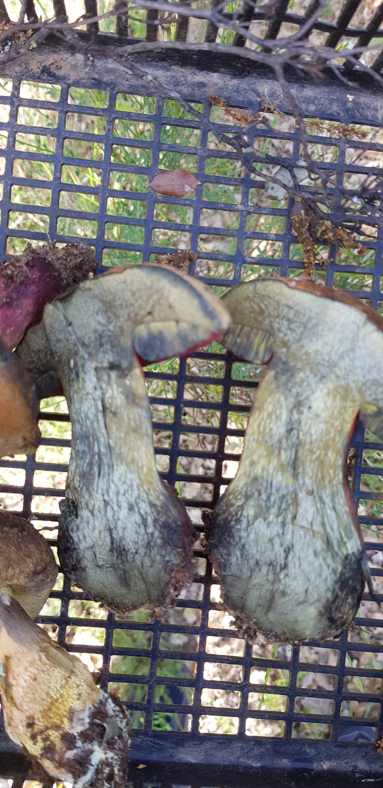 Respecto a los otros, revisando las fichas me cuadra que puedan ser Boletus luridus, var. rubriceps o, como has dicho, Boletus rhodopurpureus, ya que la carne de ambos es de color amarillo, rojiza en la base del pie.