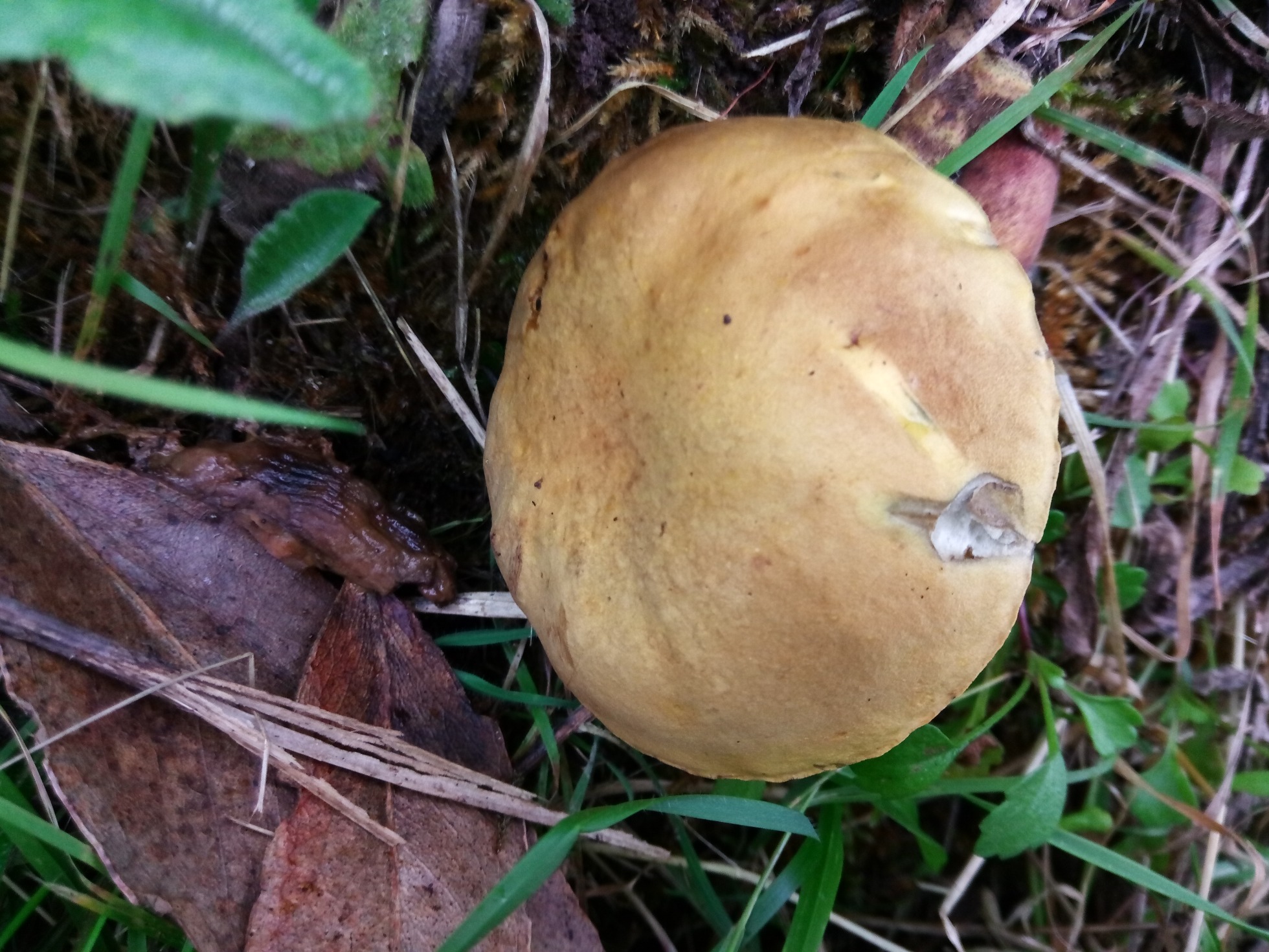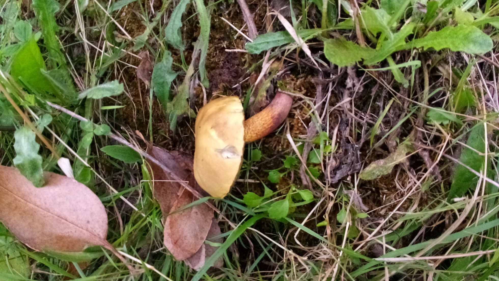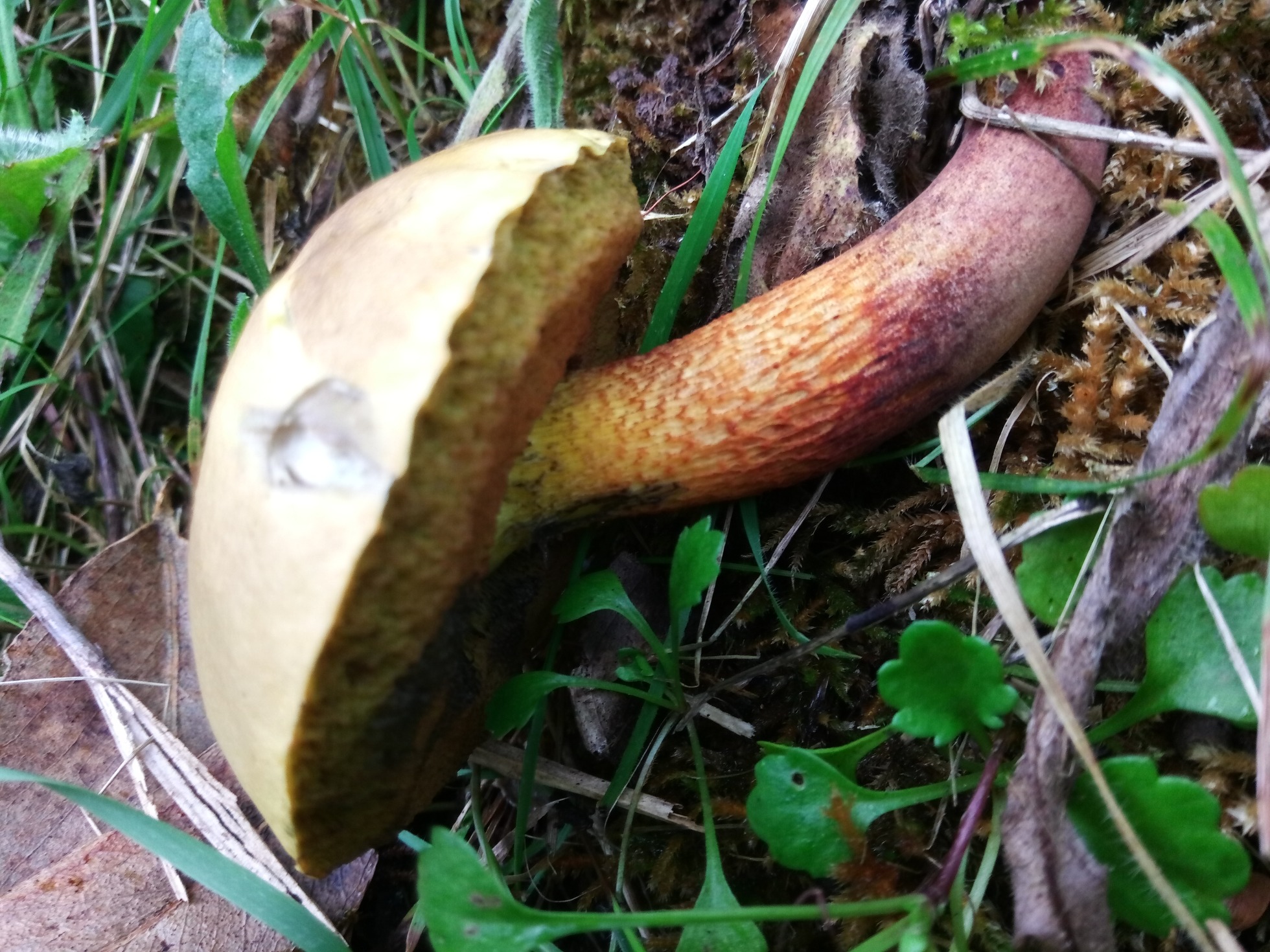 , otra opción bastante plausible sería el Xerocomus chrysenteron, actualmente Xerocomellus chrysenteron, un Boletal muy común por mi zona.