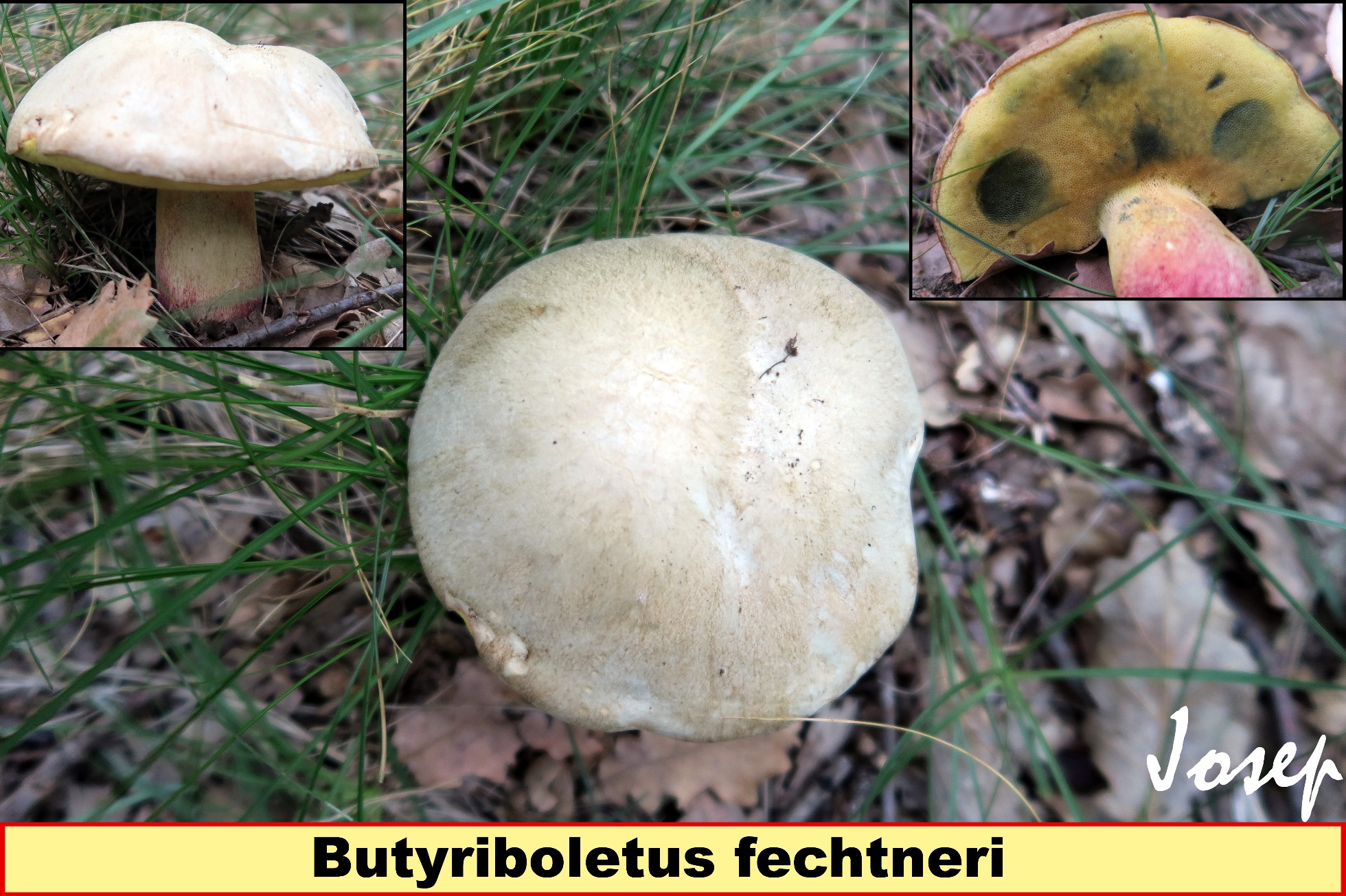 Hola Javier, las Boletaceas no son mi fuerte pero no me parece un Leccinum, lástima de no disponer de una imagen de la sección del mismo ya que nos disiparía muchas dudas. Lo mas parecido a lo que nos muestras y que me haya encontrado es el Boletus fechtneri, actualmente Butyriboletus fechtneri, te dejo unas imágenes mías de lo que en su momento consideré como tal, aunque sin contrastar con su micro.