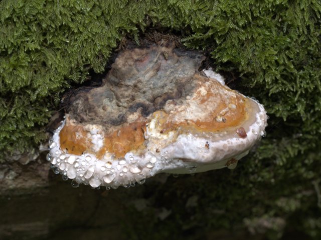 Hola Alberto, con el primero sería muy importante una imagen clara del himenio, de tratarse de un Ganoderrma y con este pié que parece bien diferenciado, teniendo en cuenta el huésped (Picea), me inclinaría por el Ganoderma carnosum, un cromo que aún no he tenido en la mano. El segundo se trata de un Polyporal en fase primordial, me he encontrado con primordios de Fomitopsis pinicola muy parecidos a lo que nos muestras.