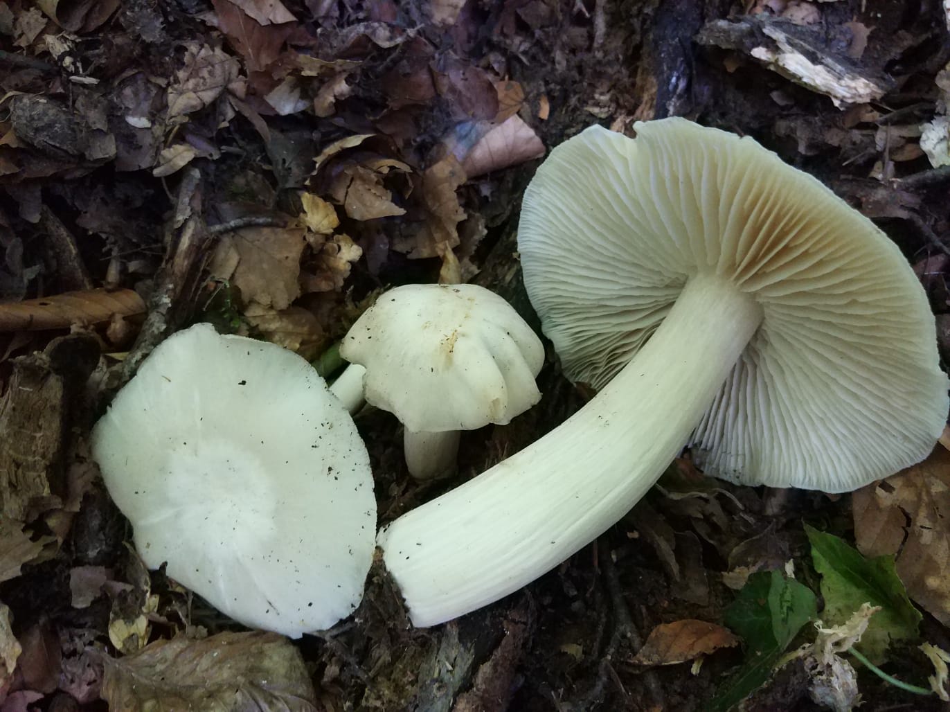 Algunos datos... en Haya, probablemente sobre restos lignícolas, olor nulo, no la probé, láminas anchas y escasa carne subcuticular. Los ejemplares más pequeños tenían rizomorfos.