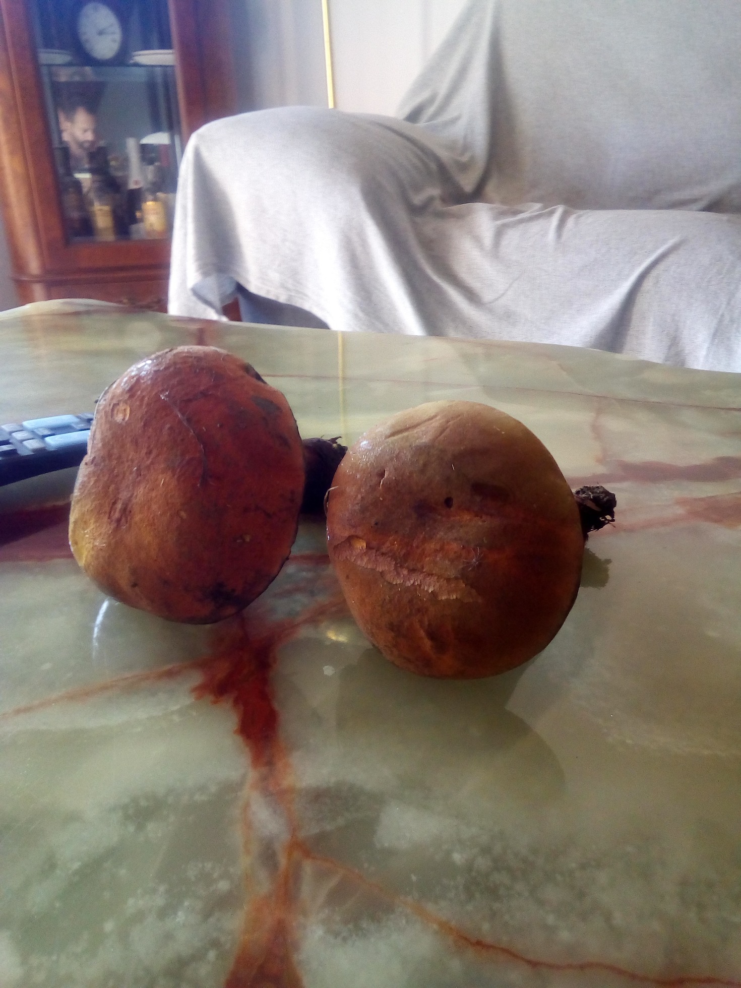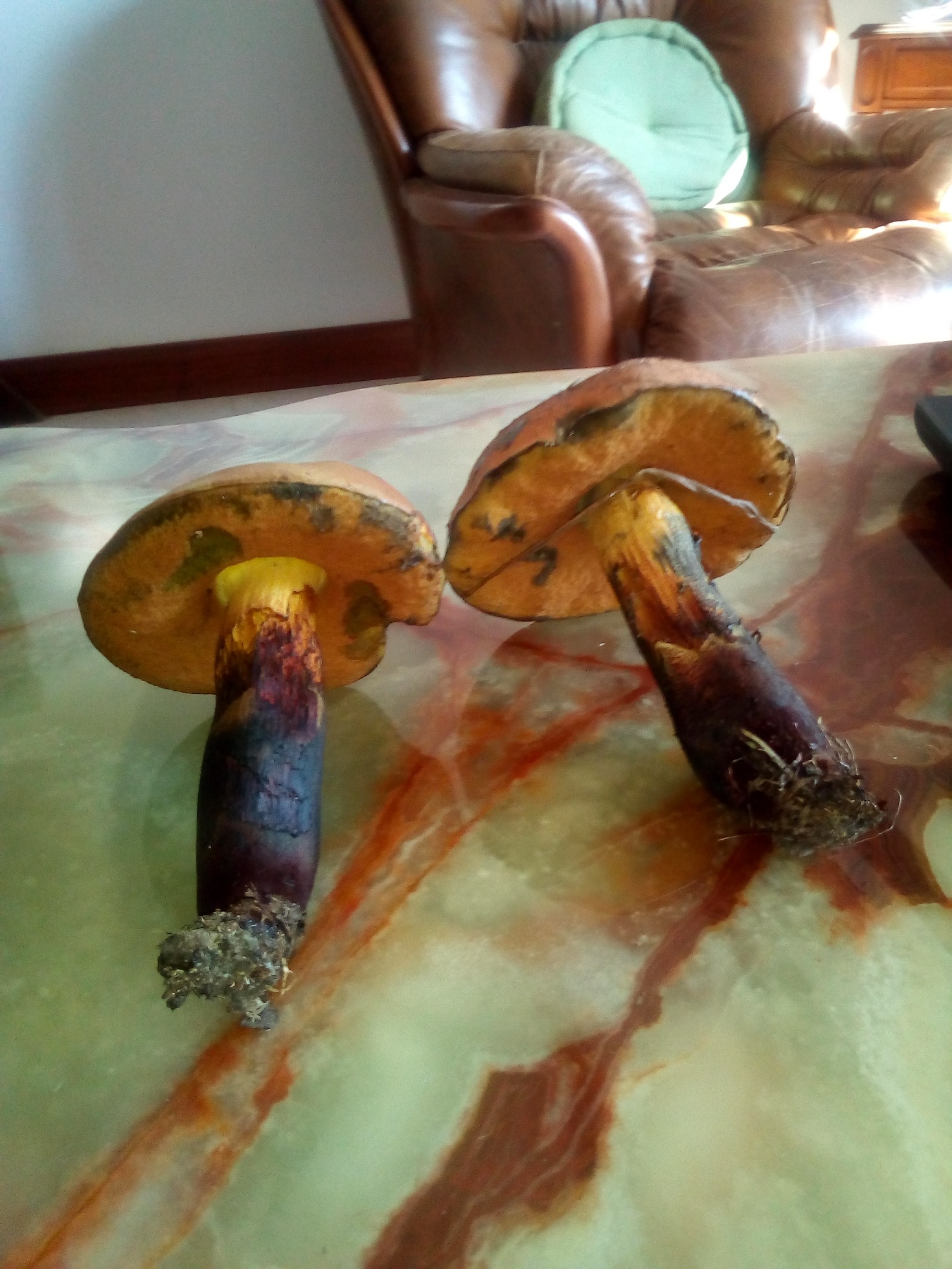 Se me ha olvidado comentaros ke cuando los he encontrado los he llevado aharrados de la base del pie unos 10 minutos hasta casa pues no llevaba nada para transportarlos. Es posible ke hayam cogido ese color debido a eso.