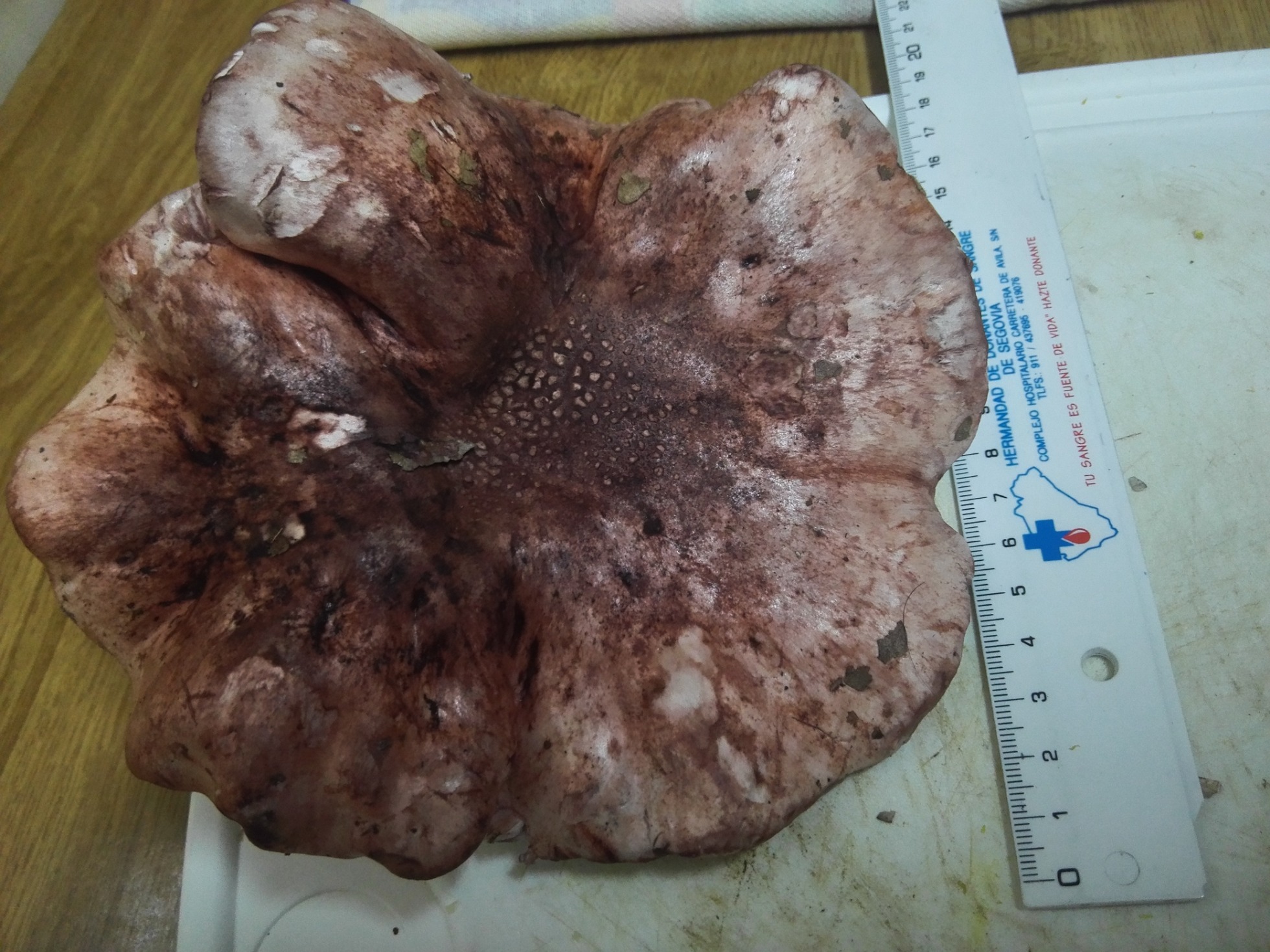 La segunda me parece una russula de un tamaño considerable y de mi muy corto. Dado lo bonito del ejemplar no he querido romperla el pie para ver si partía como tiza. Tiene un olor característico, que no se describir pero es bueno, no huele mal. No he querido hacer la prueba de si pica o no sin saber antes si podría ser una Russula. Solo recogí una, no había ninguna más. De hecho, no recuerdo haberla visto antes por lo que estimo que no debe ser muy frecuente.