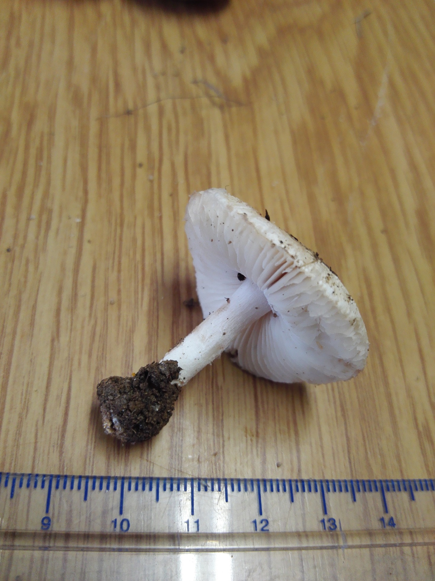 Se trata de Clitocybe rivulosa. una especie con alto contenido de muscarina y por lo tanto muy tóxica, saludos.