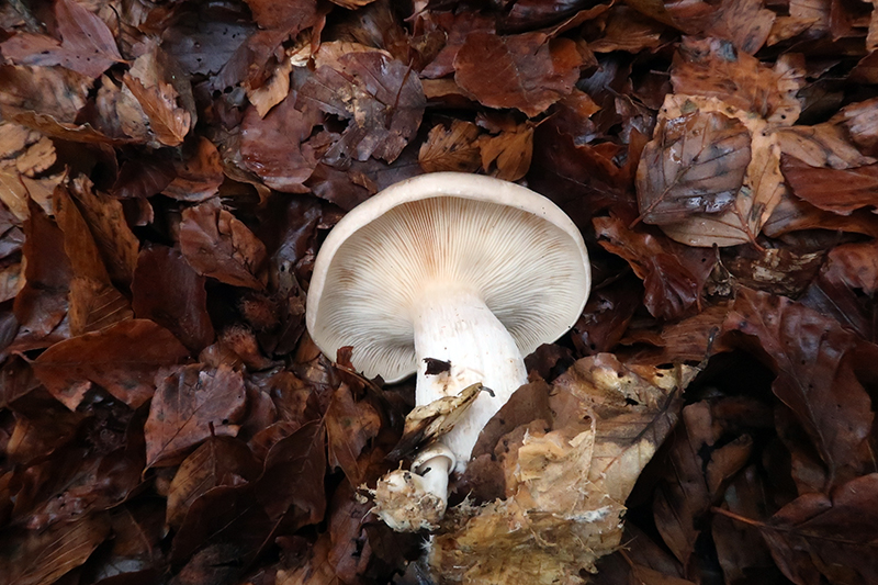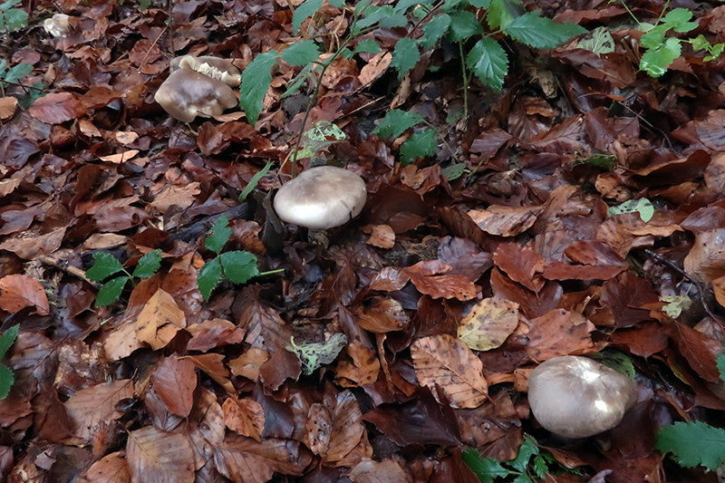 Y Clitocybe nebularis en hayedo:
