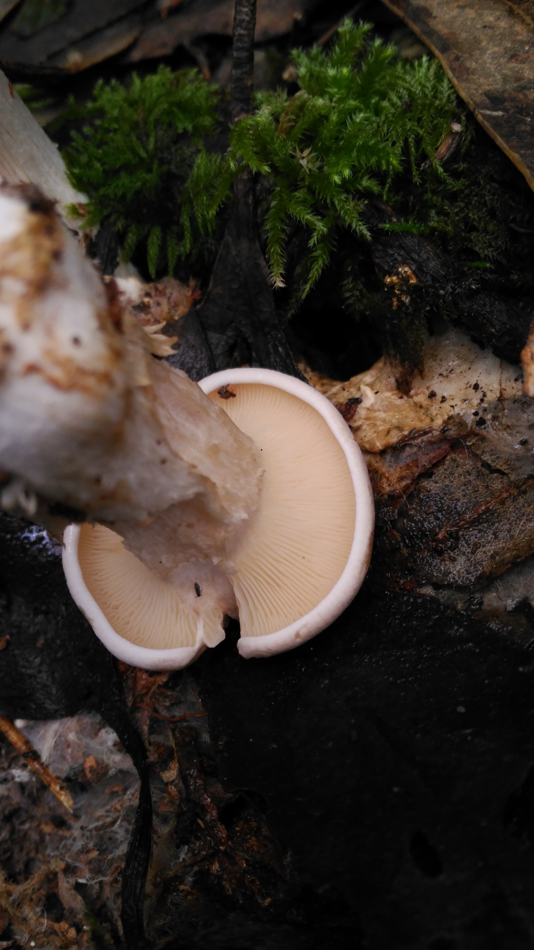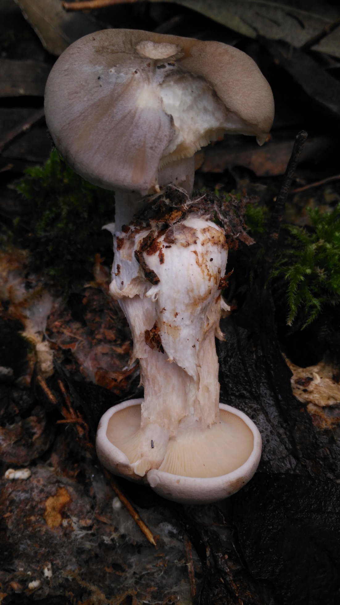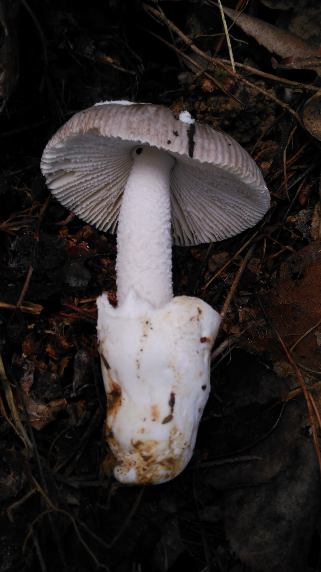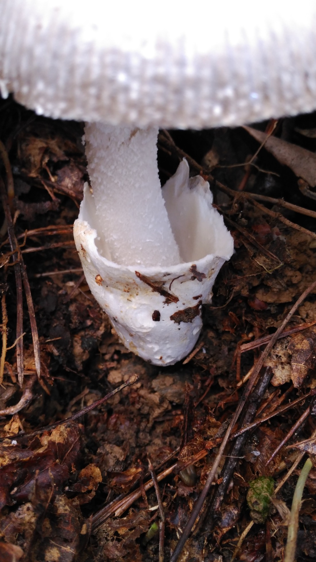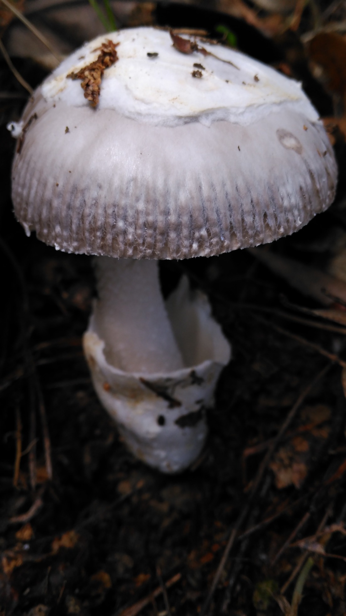 habitat: pinos y castaños, esta en concreto bajo castaño, el sombrero es de color gris perla, plateado , quizas Amanita Beckeri