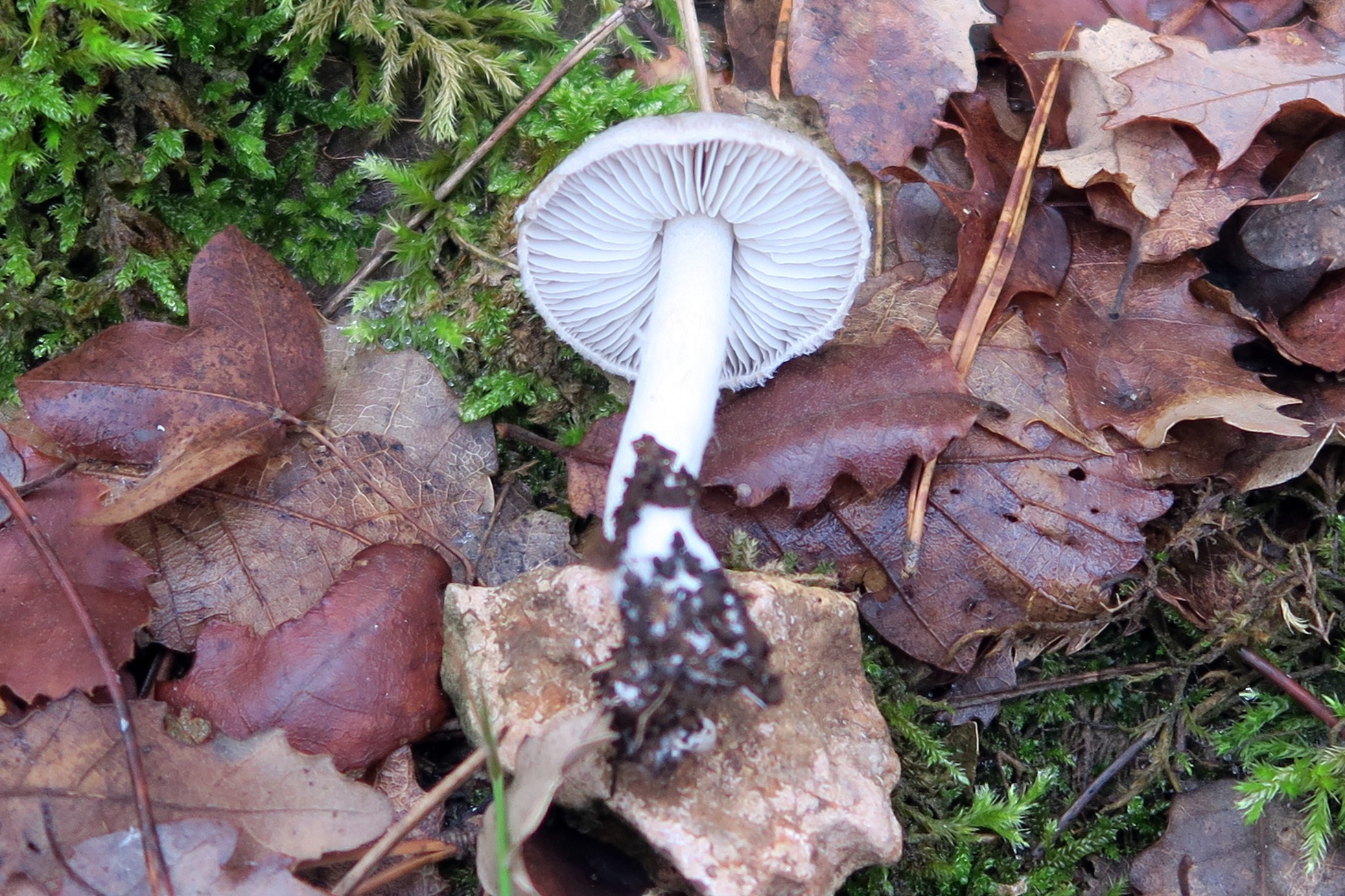 Hola Alberto, ya por el hecho de encontrarlo en un robledal deberías descartar el Tricholoma terreum, especie generalmente asociada a coníferas, por contra el Tricholoma gausapatum puede aparecer tanto en pinares como en robledales, aunque en pocas ocasiones me lo he encontrado bajo pinos. El sombrero en ambas especies es muy parecido, la principal diferencia está en las láminas muy escotadas en el caso del Tricholoma gausapatum y ya mas sinuadas en el caso del Tricholoma terreum, aunque la mejor manera de diferenciarlas claramente es con la microscopía de la pileipellis que en el caso del Tricholoma terreum presenta tres capas bien diferenciadas.