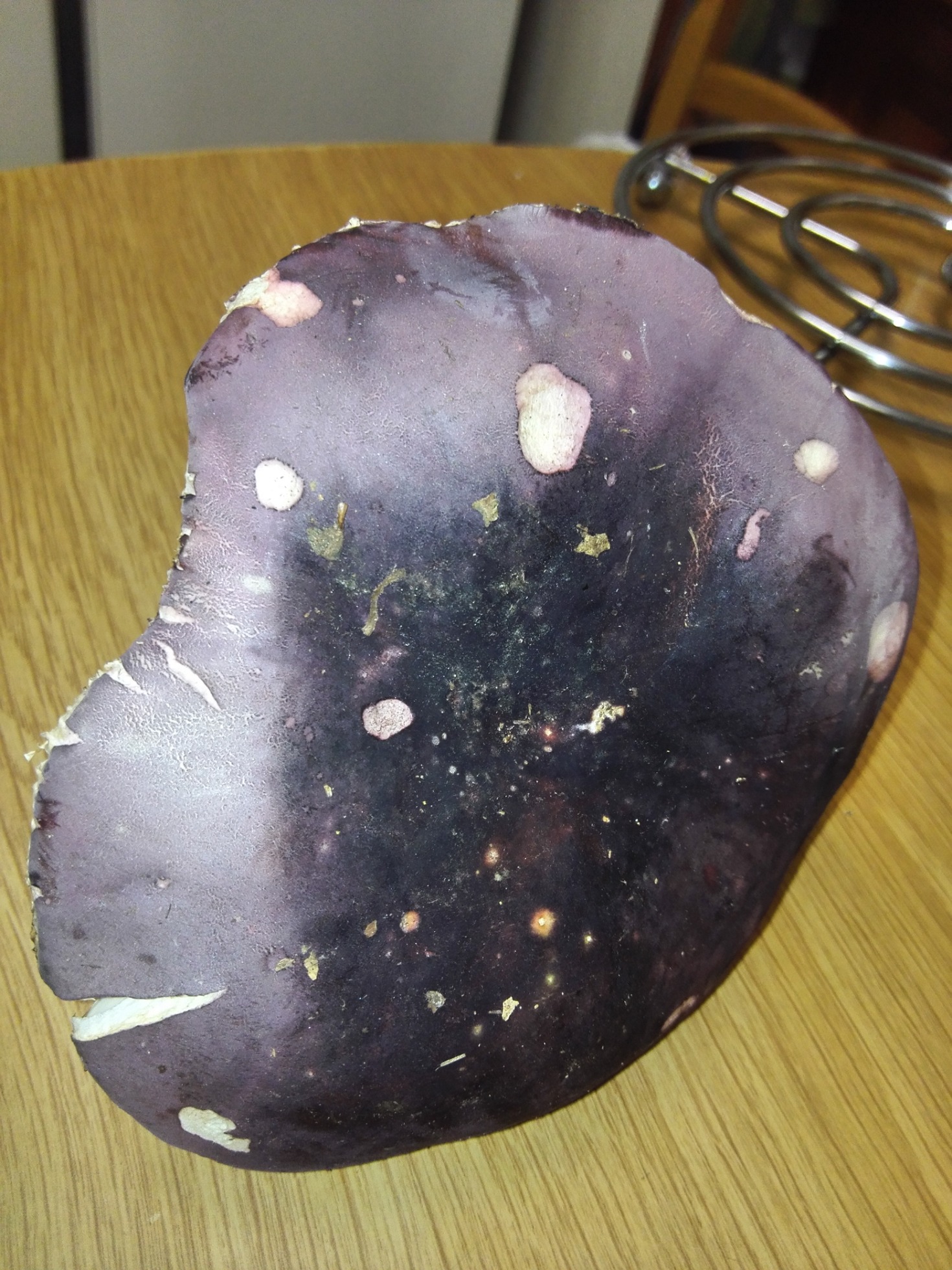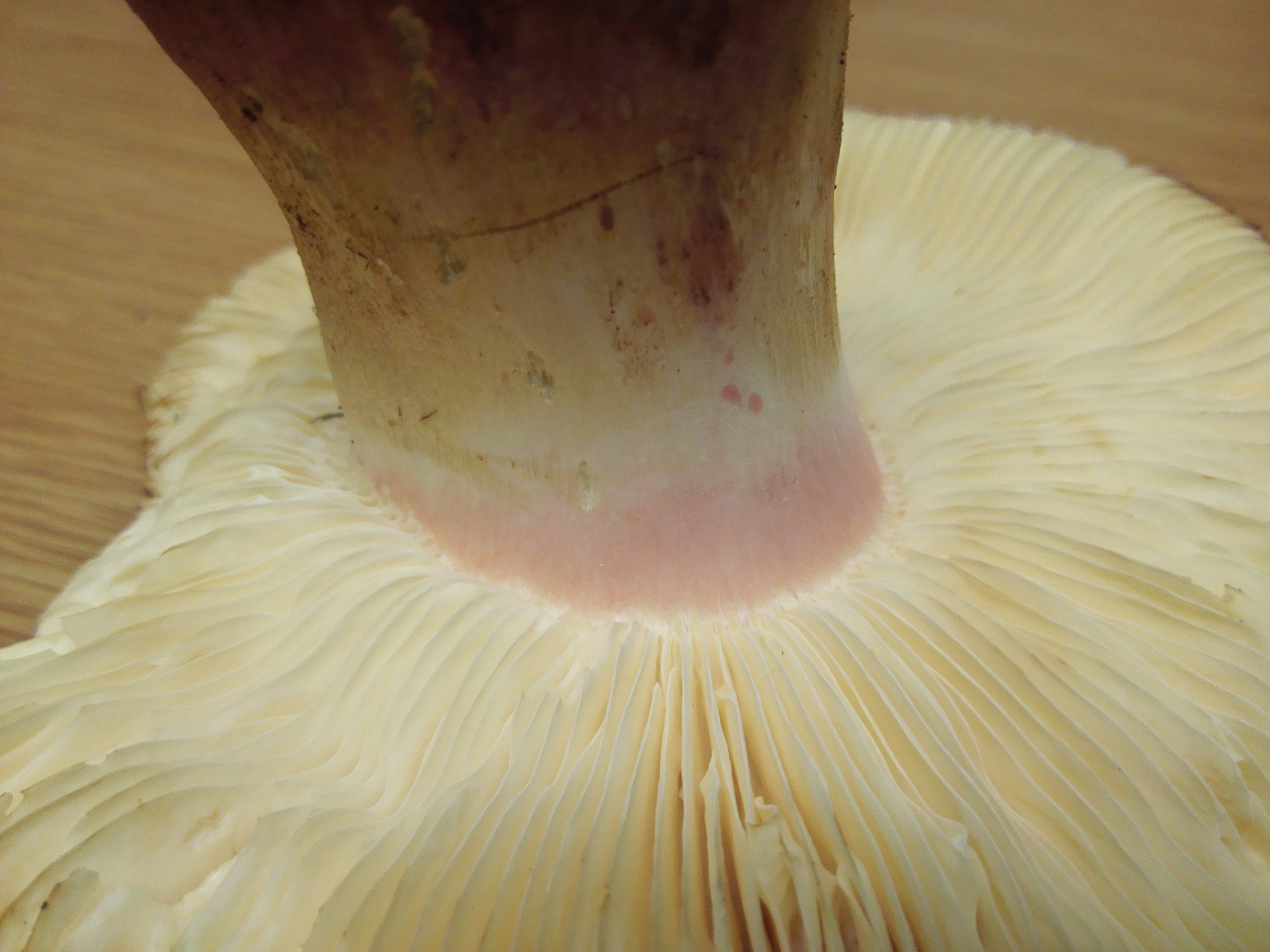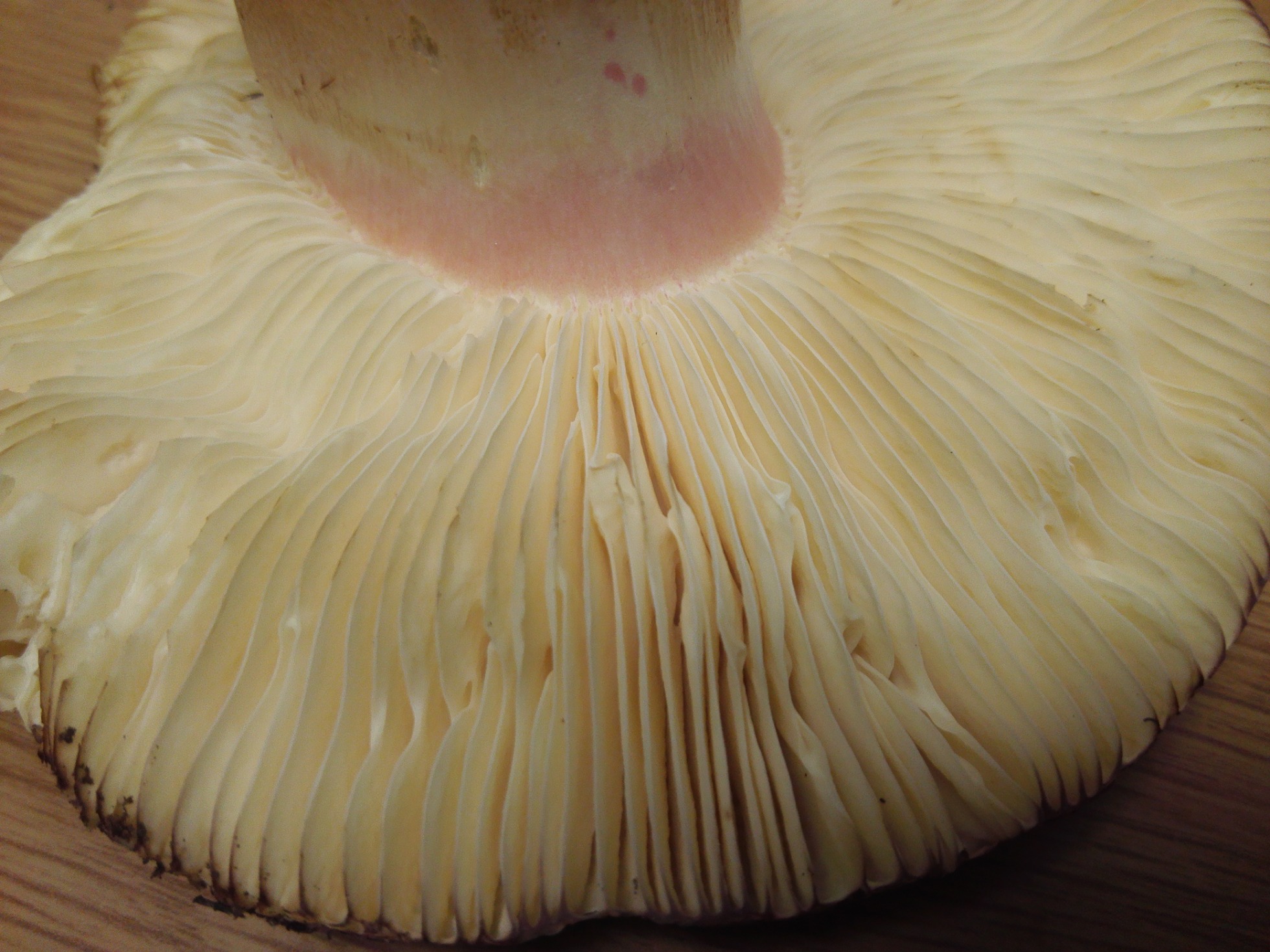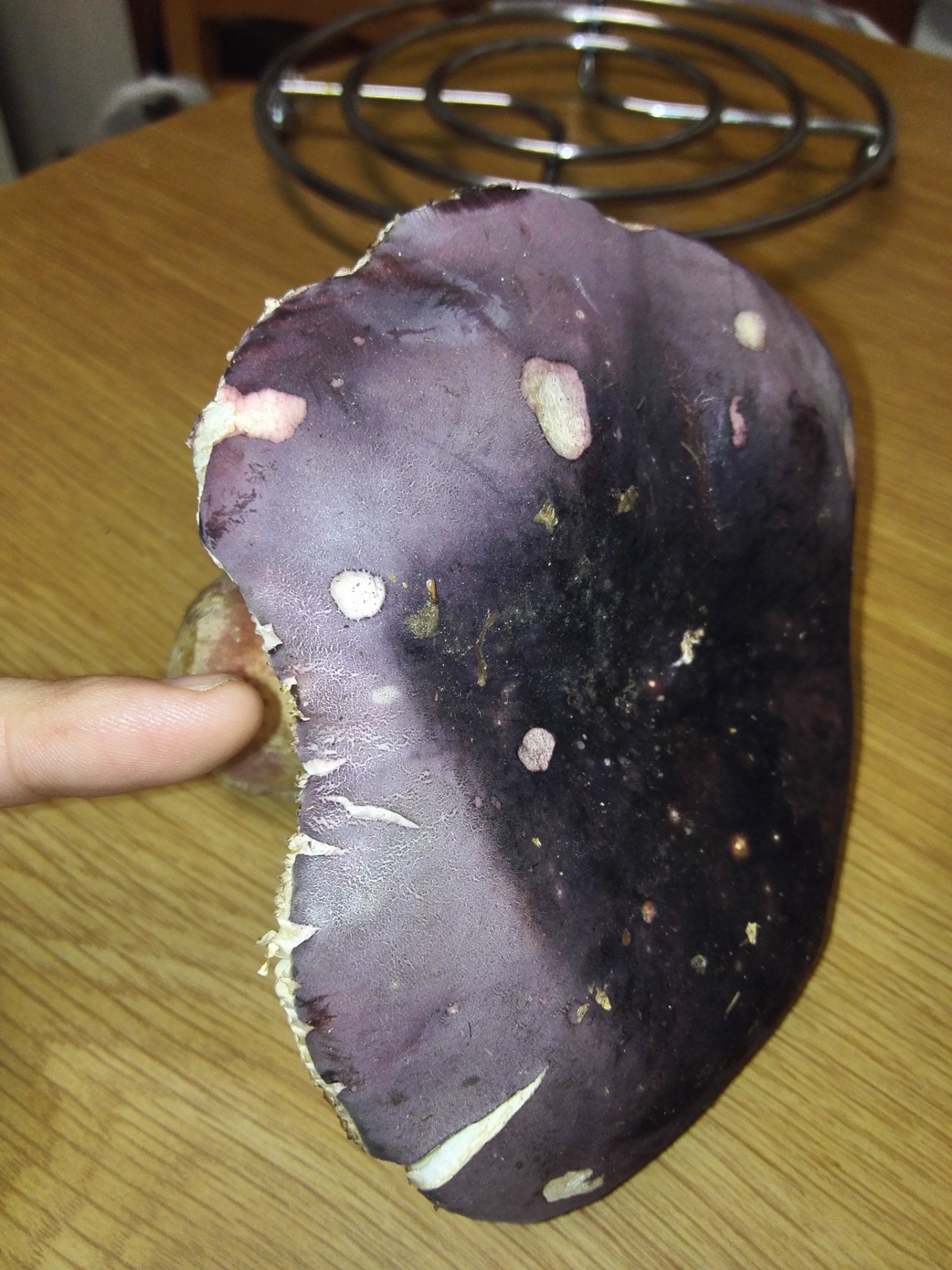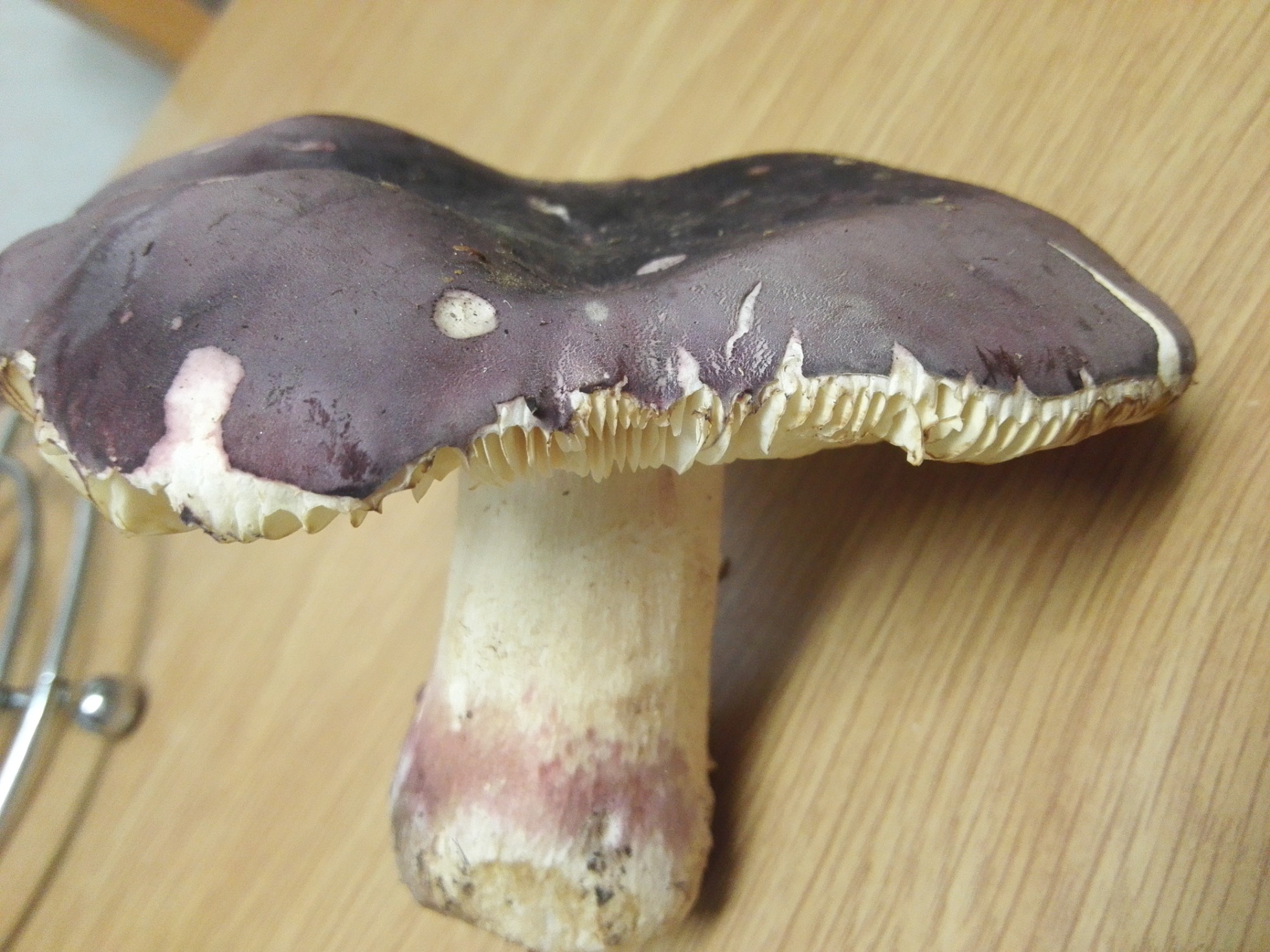 La russula turci veo en todas las fotos que es de sombrero mamelonado y la amethystina se parece mas que la turci en fotos por Internet, ademas de que la veo la parte central del sombrero deprimida y no mamelonada. El olor de la amethystina es mas suave dicen los manuales. A mi me huele suave, ahora la vuelvo a meter la nariz. Por qué no te parece R. amoenicolor?