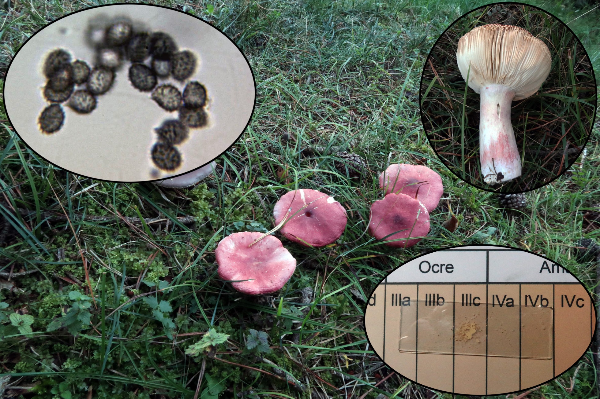 Hola Jon Ander, muy importante en las Russulas el dato del sabor, en este caso debería ser muy picante (habría que comprobarlo). Con los datos que nos aportas parece que la tienes bien identificada, en el caso de los Lactarius y las Russulas, con las esporas para poder observar mejor la ornamentación esporal (muy importante en algunos casos), aconsejo utilizar siempre el Melzer, también indicar que las medidas esporales que nos indicas estan un poco por encima de las que debería presentar, aunque entran dentro de la variabilidad propia de la especie. Si la esporada era ocrácea, bajo pinos y si su sabor era picante, no hay muchas posibles confusiones, por si te sirve te dejo un par de imágenes mías de la Russula sanguinea, una de ellas con un resumen de su microscopía.