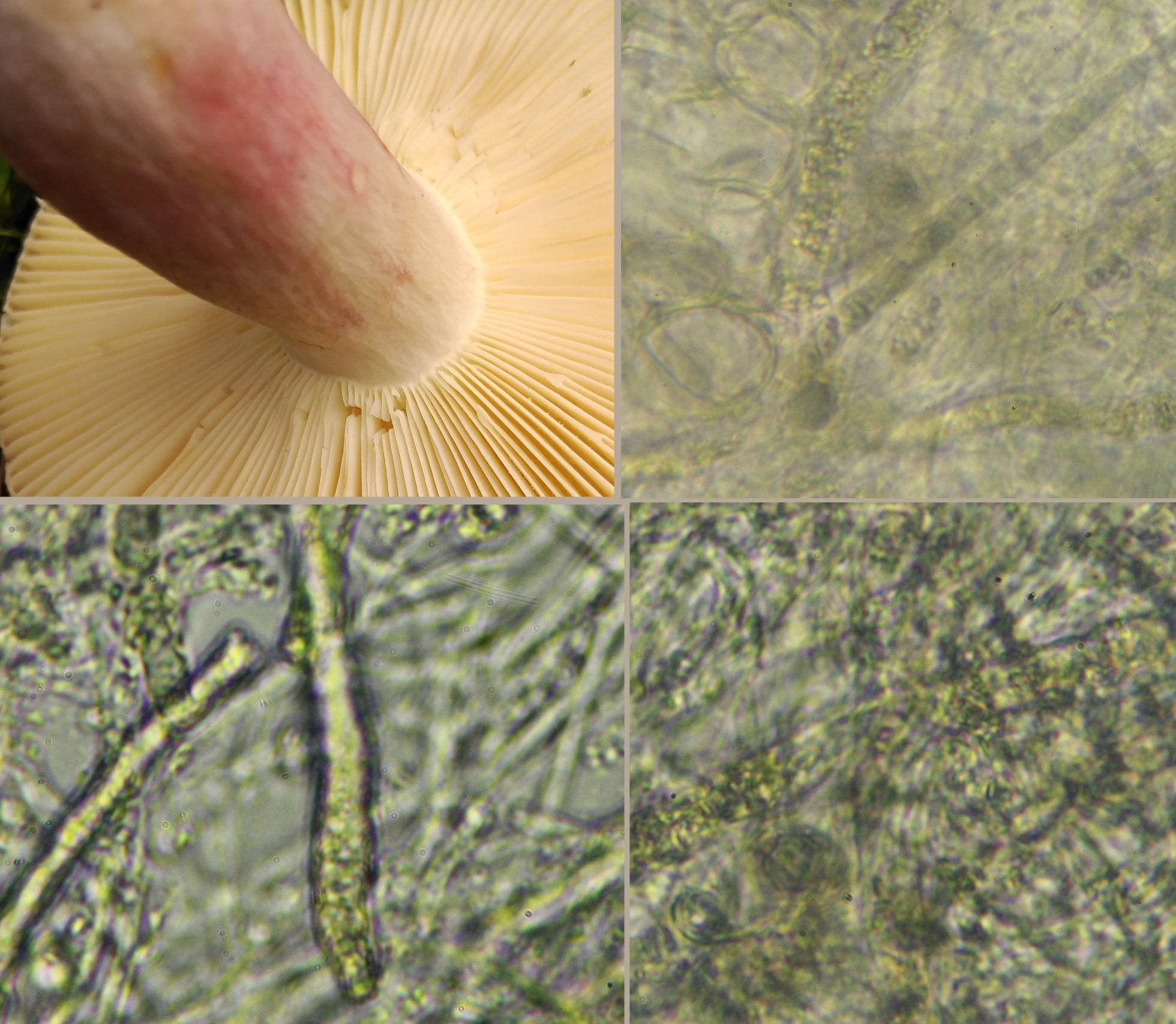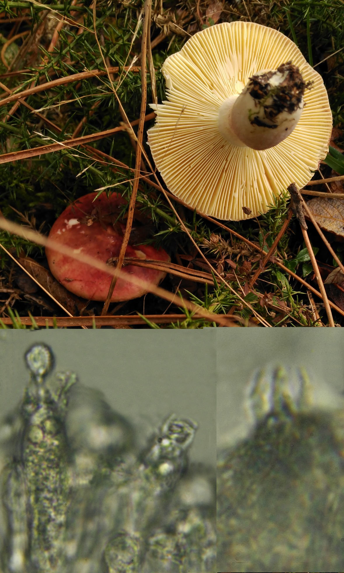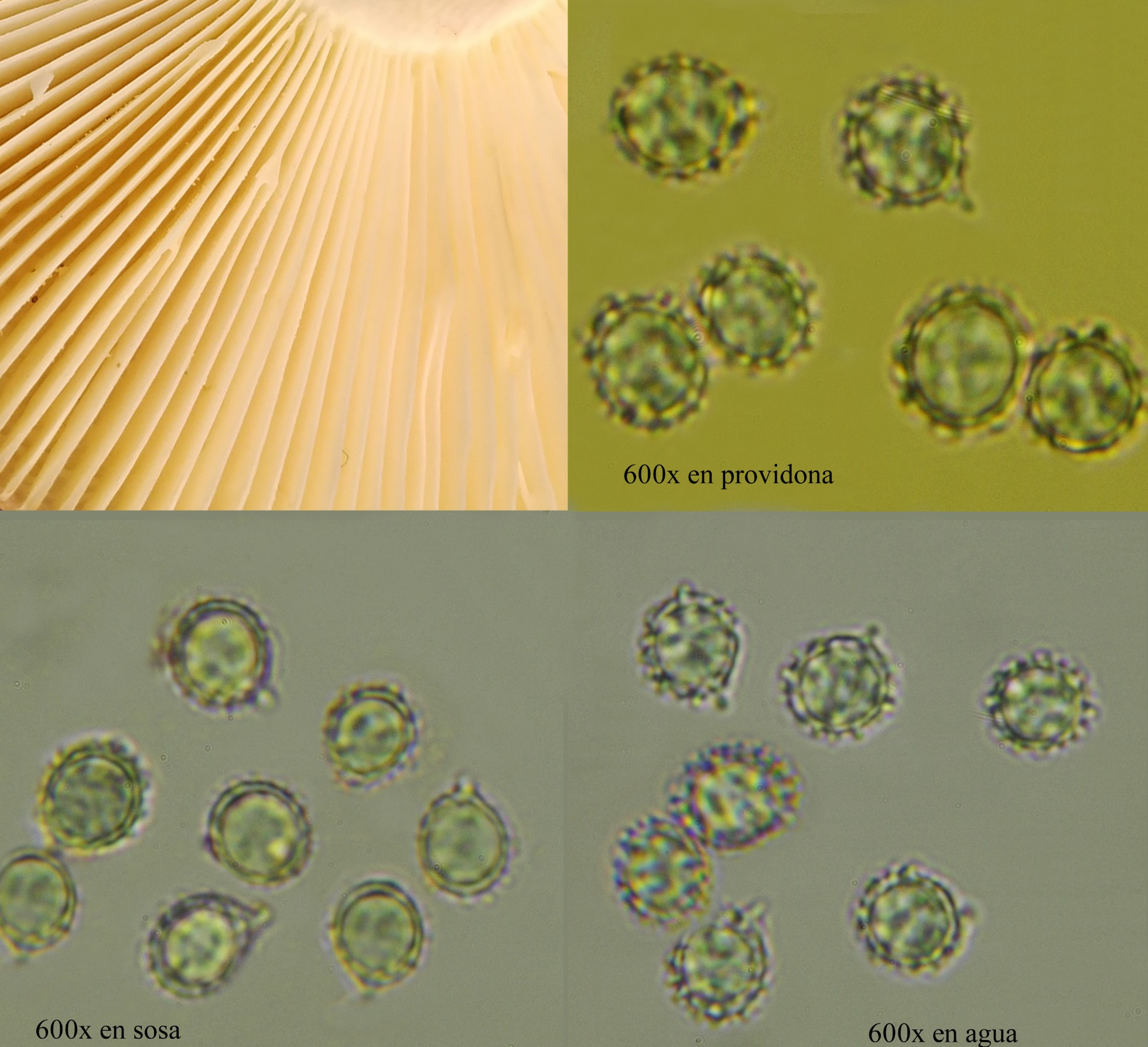 Hola Jon Ander, ya te he indicado de antemano que me parece que la tienes bien identificada, muy importante en el caso de las Russulas, el color de la esporada en masa, en mi estudio me dió lllc en la escala de Romagnesi, para apreciar bien el color de la esporada en masa hay que disponer de una buena cantidad de esporas y amontonarlas debidamente, cubrirlas con otro porta y comparar, solo así podrás diferenciarlas con garantías, es que si la esporada era blanca hay que buscar por otro lado. Aun así ya tan solo por el color que adquieren las láminas en tus imágenes me da que en tu caso la esporada era ocrácea.
