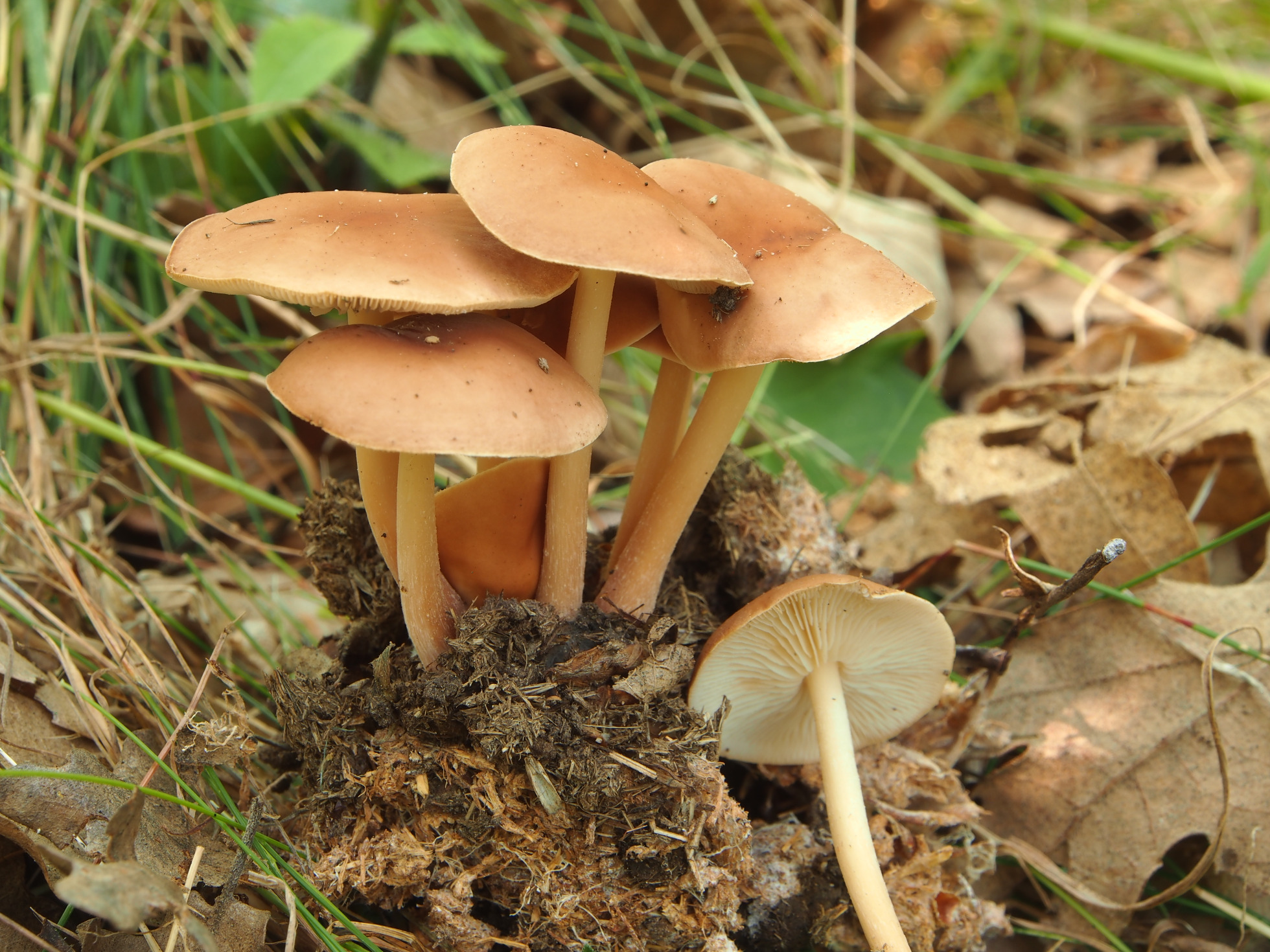 Con el último a pesar de que aparece sobre el estiércol, tiene toda la pinta de Gymnopus, uno de los que provienen de las antiguas Collybias.