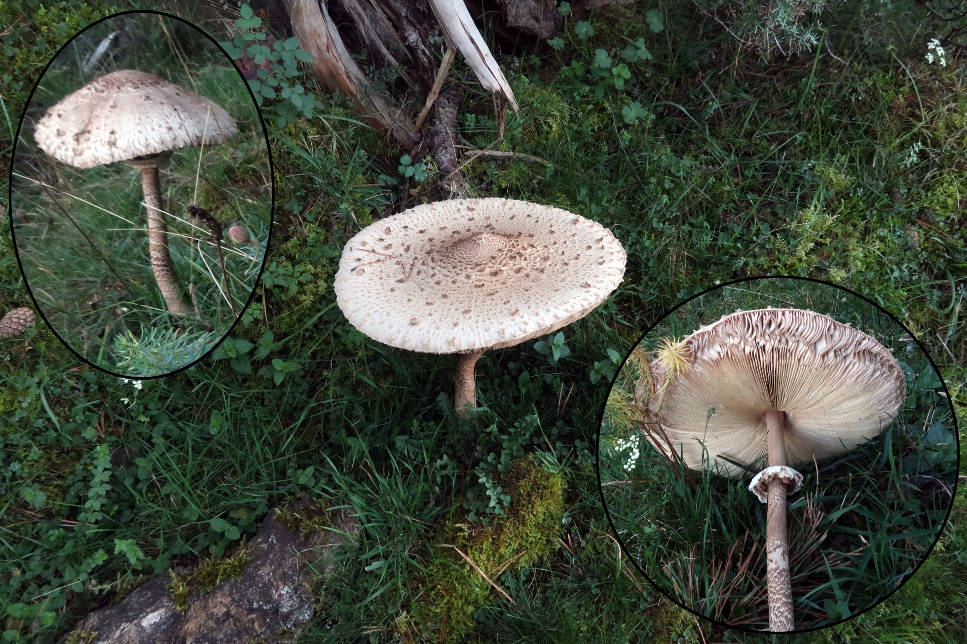 Te dejo unas imágenes mías de Macrolepiota procera, una de Macrolepiota rhacodes, actualmente Chlorophyllum rhacodes y otra de Macrolepiota mastoidea var. rickenii.