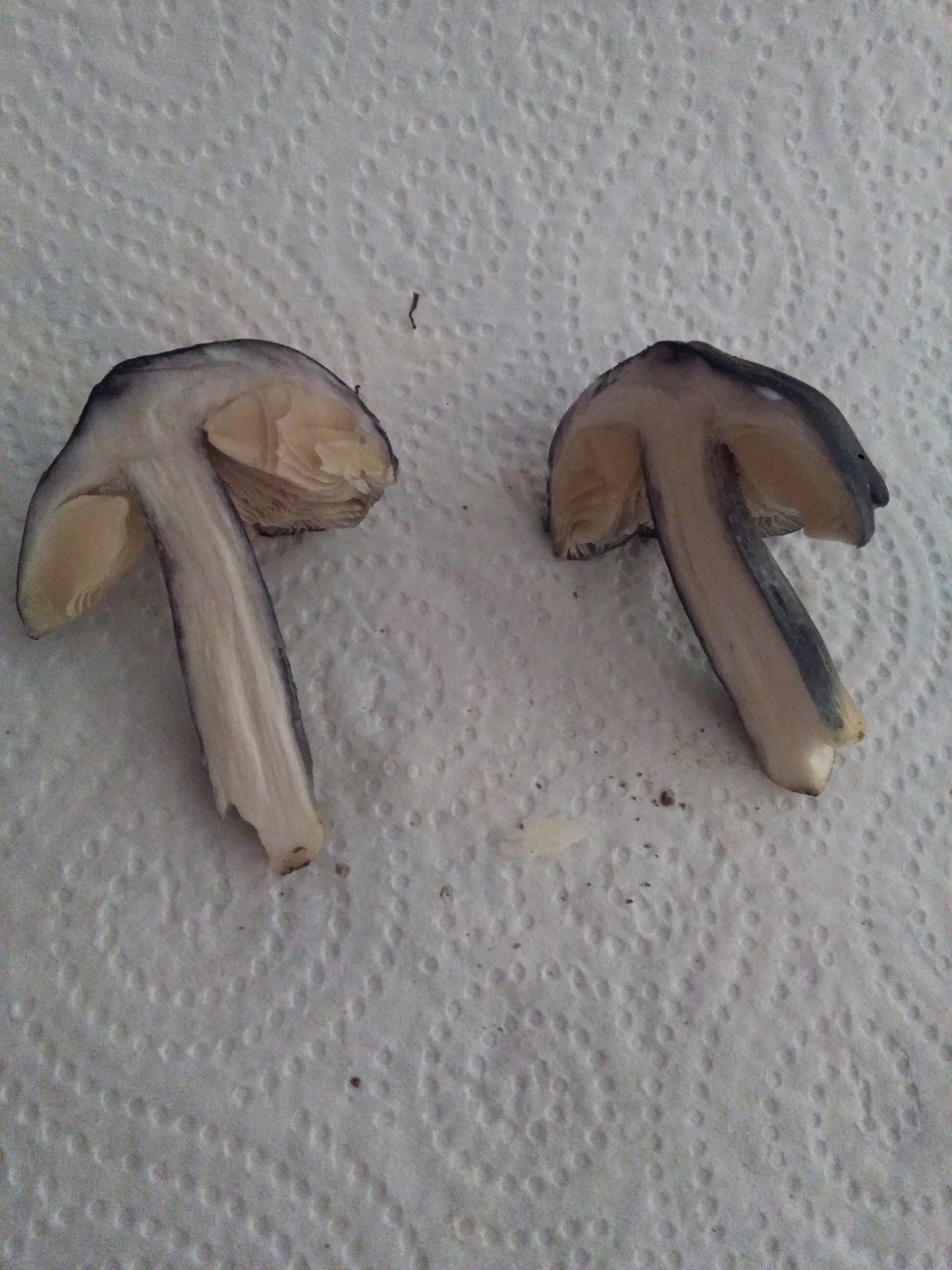 Puede tratarse de un cortinarius en el primer caso y una russula heterophylla en el segundo. Para la última no tengo opción (color azul grisáceo por si no se aprecia bien). Todas recogidas en robledal a unos 700 m de altitud. Siento no poder haber fotografiado las 2 últimas especies in situ. A ver que me contáis.