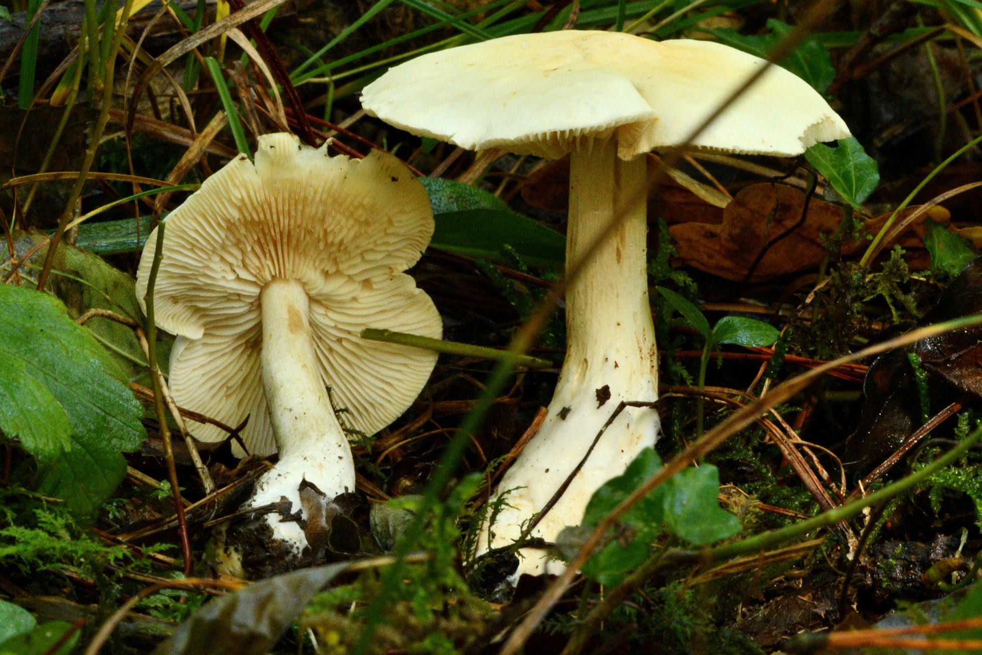 Hola, no se si tienes bien calibrado el micro, muy pequeñas me parecen las esporas, vamos por partes, descartados de antemano los dos géneros propuestos, no tienen aspecto de Clitocybe, (láminas decurrentes) ni mucho menos de Hygophorus (láminas separadas), sería interesante el dato del olor para saber a que nos enfrentamos, también el sabor en crudo, mordiendo un poco y escupiéndolo, sin tragar nada por supuesto. Posibilidades, Tricholoma grupo album (ninguno tiene esas medidas tan cortas) que es lo más probable, o sino es que son Calocybes...