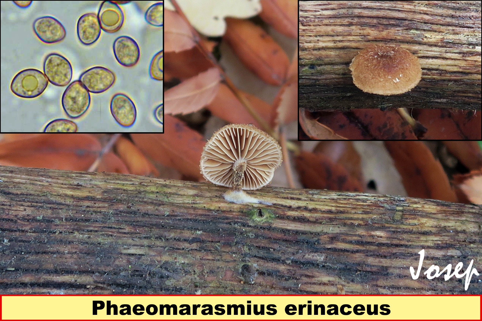Dejo una imágen mía de Phaeomarasmius erinaceus.