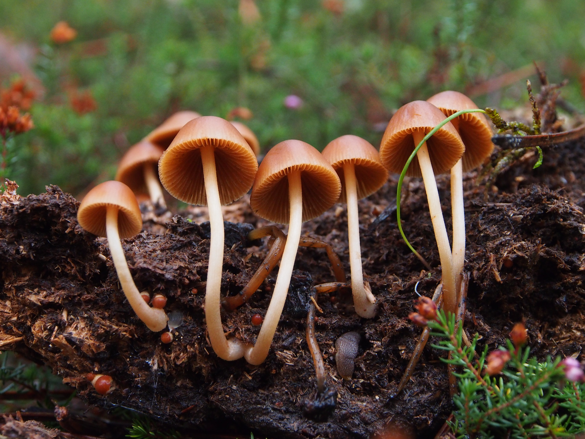 Y la septima y ultima, en excrementos de vaca dentro de un pinar. Parece una Mycena, pero dado el lugar de crecimiento, no sé si no sera un Psylocybe o una Psathyrella...