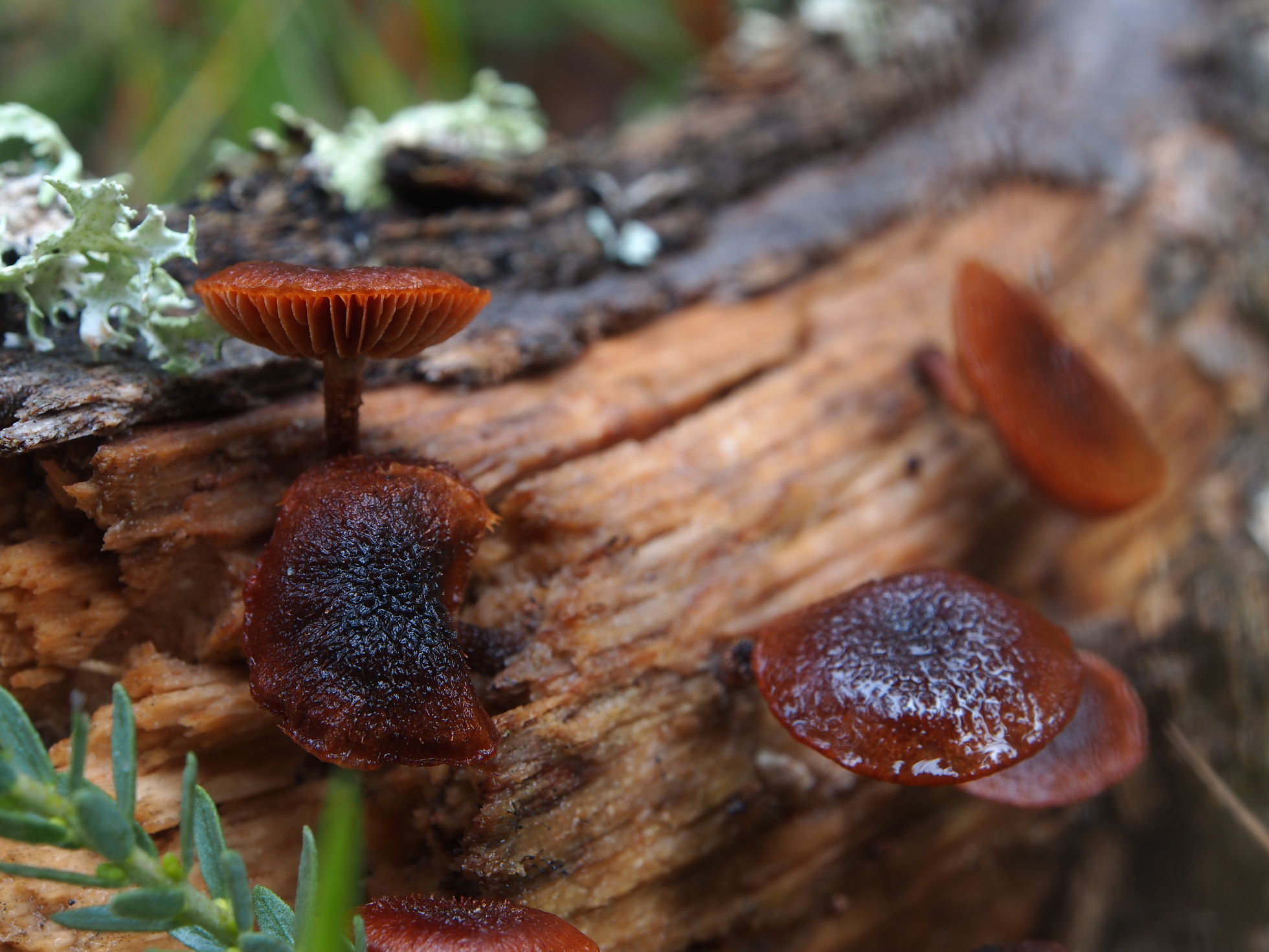 Con respecto a la 4º foto Sergio nos indica que los ejemplares son muy viejos, y con esas características macroscopicas me siguen pareciendo Phaeomarasmius erinaceus creciendo a partir de restos de madera muerta de quercus.