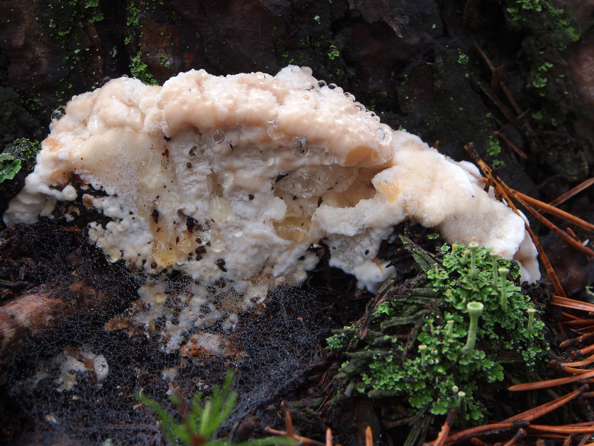 5 - No me parece Postia, con esta exudación tan marcada podría tratarse de un primordio de Fomitopsis pinicola, los he visto con un aspecto muy parecido.