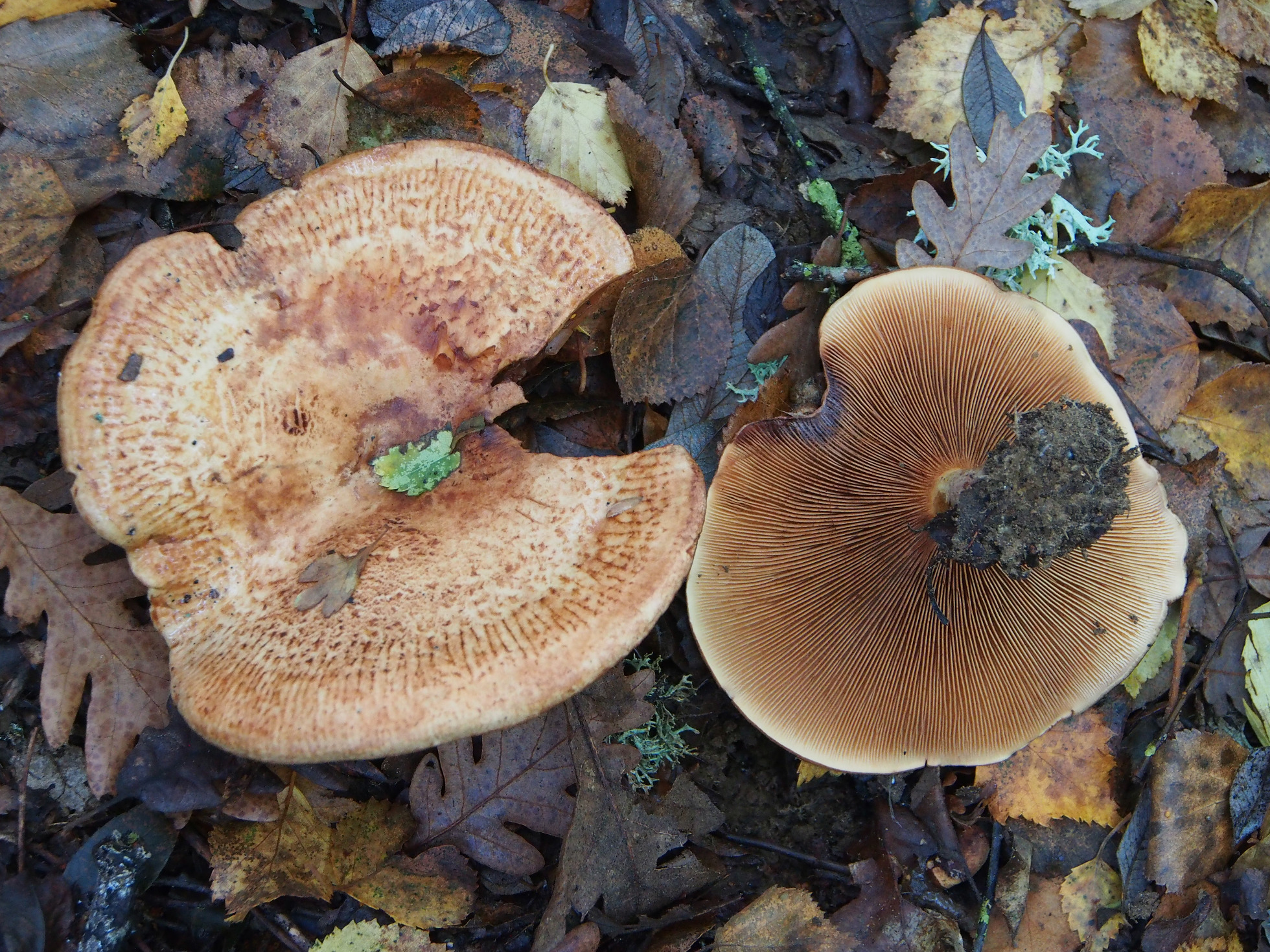 Gracias Javier por la aclaración, muy observador, si bien es cierto que el Paxillus filamentosus según algunos autores también micorriza con abedules, no lo hace bajo robles y en la imágen se aprecian claramente hojas de roble, así que es bastante probable la opción de Paxillus involutus, es que particularmente el Paxillus involutus hasta la fecha solo me lo he encontrado bajo coníferas.