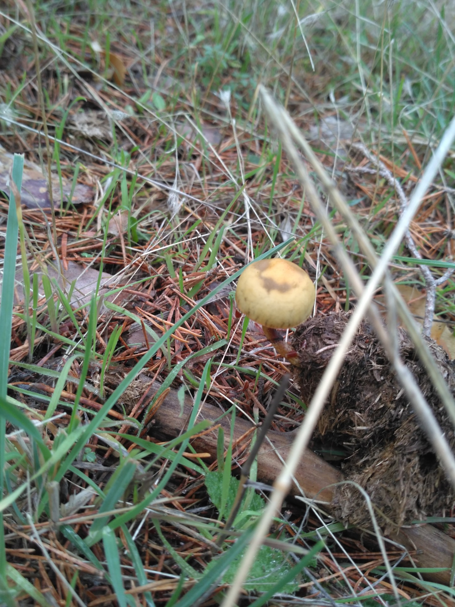 Luego ya en tu segunda respuesta veo dos hongos completamente distintos, el que aparece sobre estiércol la cosa podría ir por Psilocybe o Panaeolus y el otro se trata de un primordio de Macrolepiota procera.