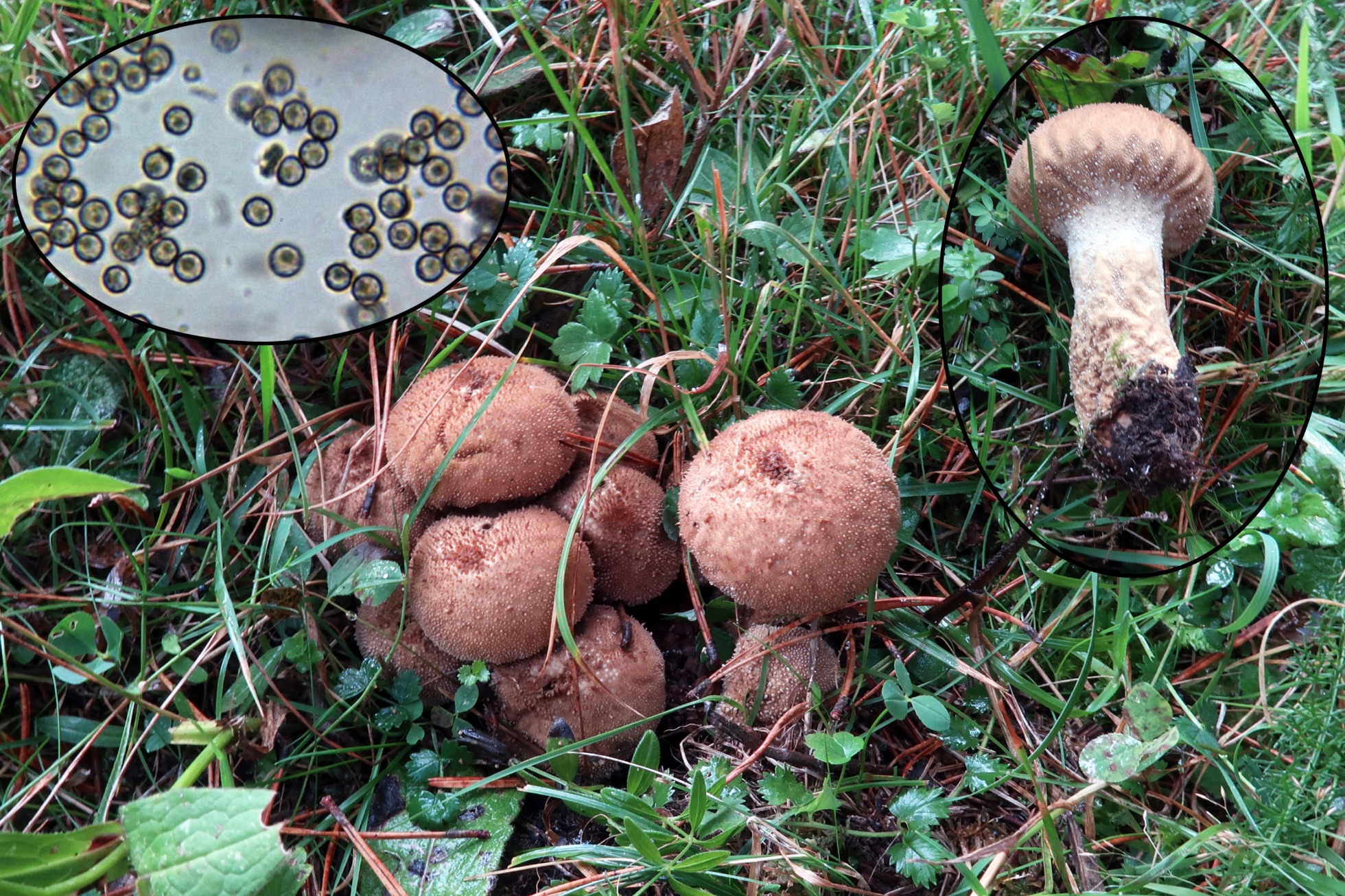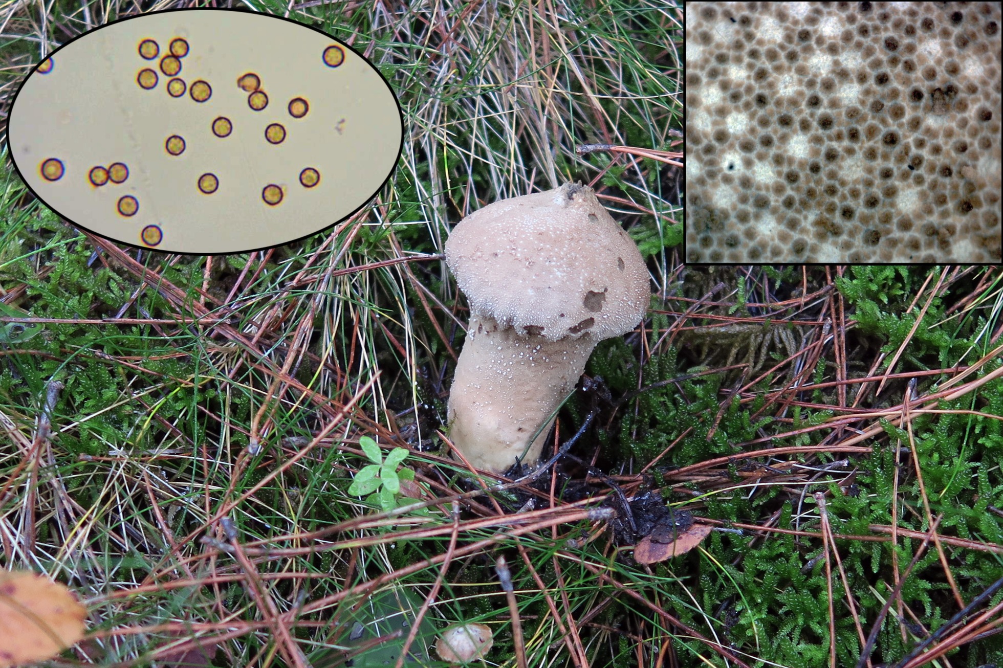 Con el Lycoperdon te dejo un par de imágenes mías con presentaciones un poco aberrantes del Lycoperdon perlatum, una de ellas de un ejemplar de gran tamaño que cuando lo encontré pensé en Lycoperdon excipuliforme, al final al pasarlas por el micro solo pude confirmar que se trataba del muy camaleónico y abundante Lycoperdon perlatum.