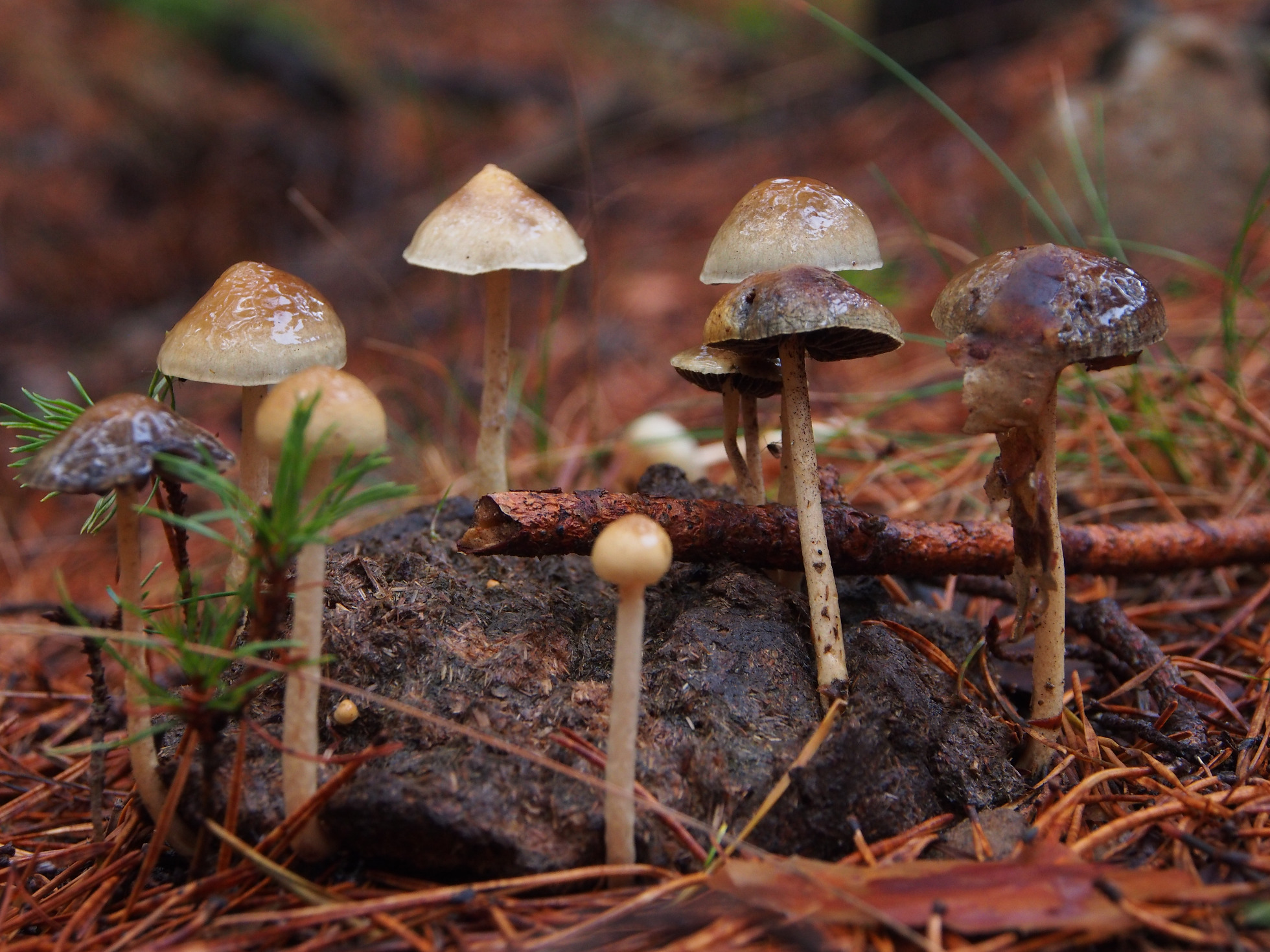 2 - Un Psilocybe, atendiendo al hábitat hay varios de parecidos, Psilocybe fimetaria, Psilocybe coprophila, Psilocybe liniformans........................