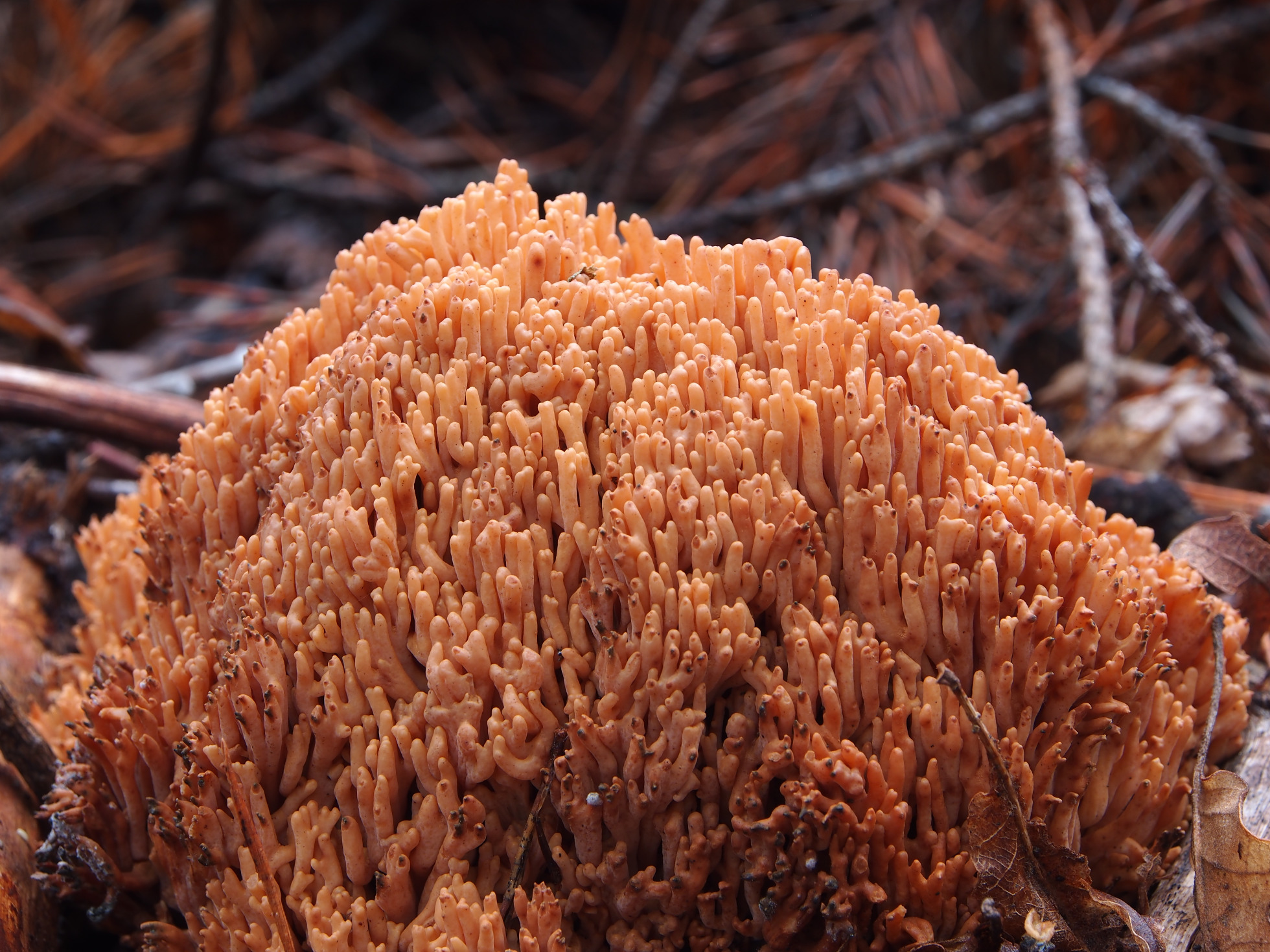 Con las Ramarias poco te puedo ayudar, aunque estas puntas rojidas y poco ramificadas me recuerdan a la Ramaria botrytis o hasta quizás Ramaria neoformosa, pero con muchas dudas.