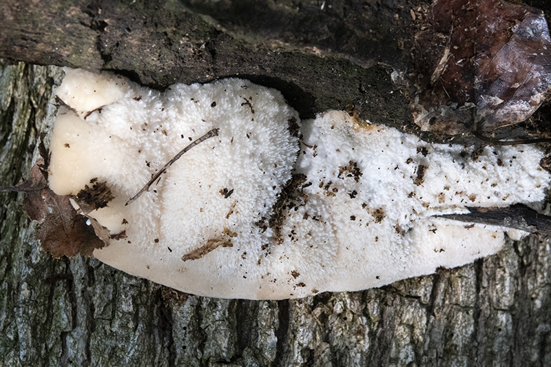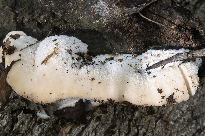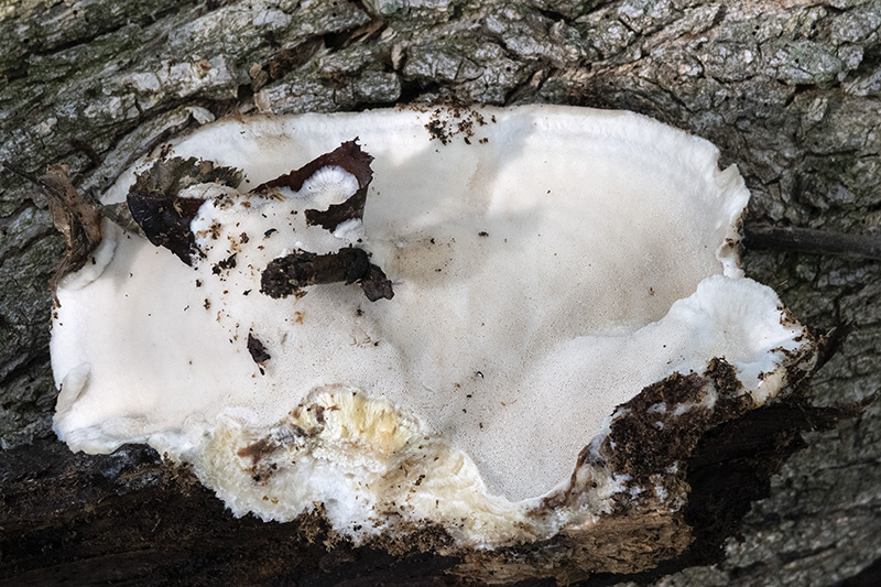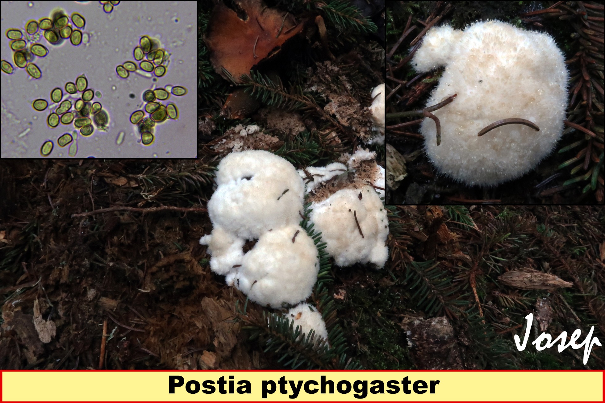 Añadir además en este caso que todos los autores consultados indican para el Tyromyces chioneus una superficie del sombrero afelpada, aterciopelada, hasta incluso vellosa, concorde con las imágenes de Ángel, además en la primera imágen que nos muestra Ángel (la del ejemplar ya arrancado) se ve perfectamente la superficie poroide propia de Tyromyces chioneus y ausente en el caso de la Postia ptychogaster.