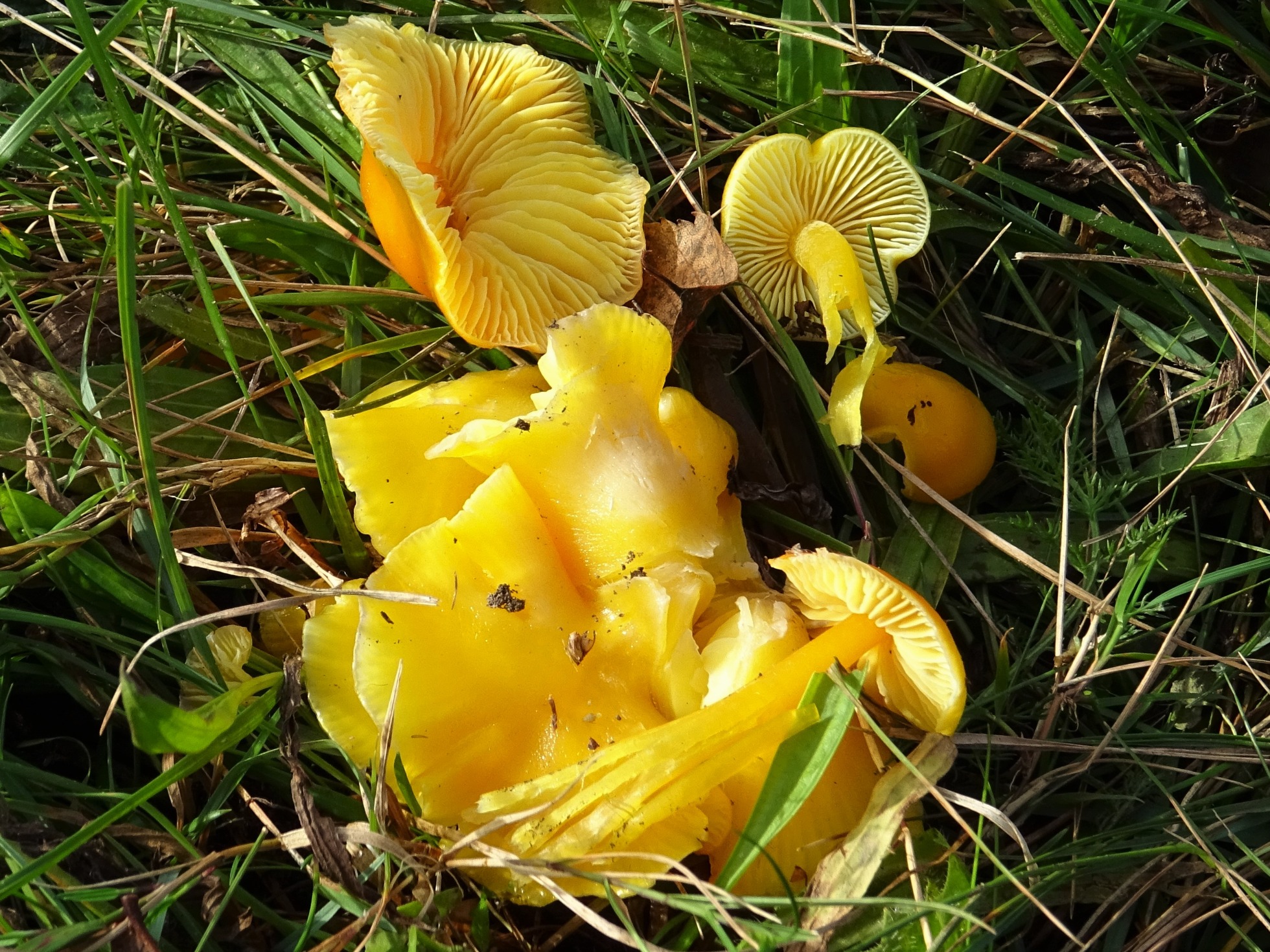 Hola Oskar, en una primera impresión te diría que son Amanita rubescens, Hygrocybe chlorophana, Mycena pura y la "butifarra".