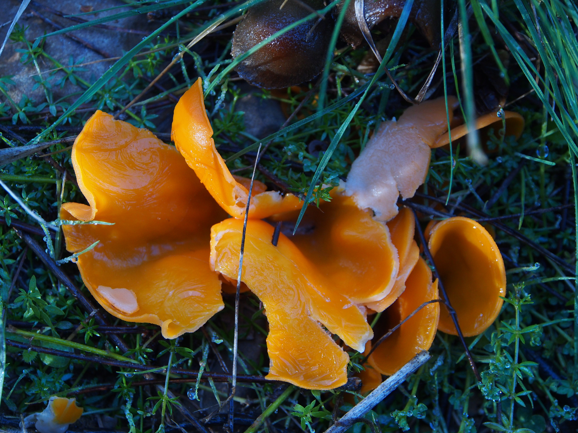 Hola Sergio, para casos como la presunta Aleuria....coloca una pequeña regla al lado de los ejemplares a fotografiar para que nos podamos hacer una idea de su tamaño real. Si en ese momento no dispones de una pequeña regla....coloca una moneda y eso servirá como referencia visual.