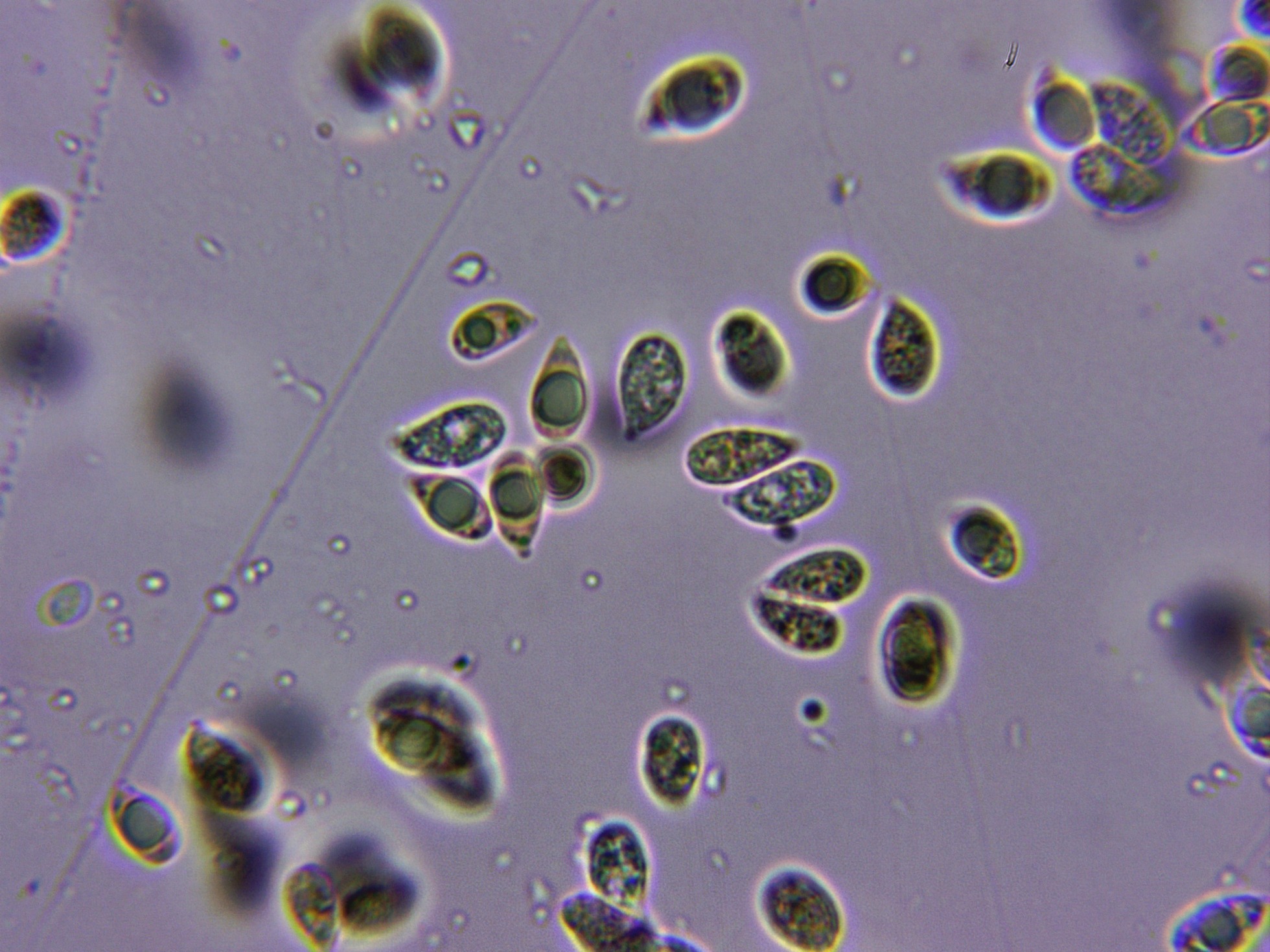 Te añado unas imágenes mas mías de esporas de Cuphophyllus virgineus, la morfología esporal de tus imágenes parece coincidir con la especie, y un pequeño aunque cariñoso tirón de orejas, los apellidos de las especies van siempre en minúsculas, muchos años atrás yo también lo hacía mal y los ponía en mayúscula.