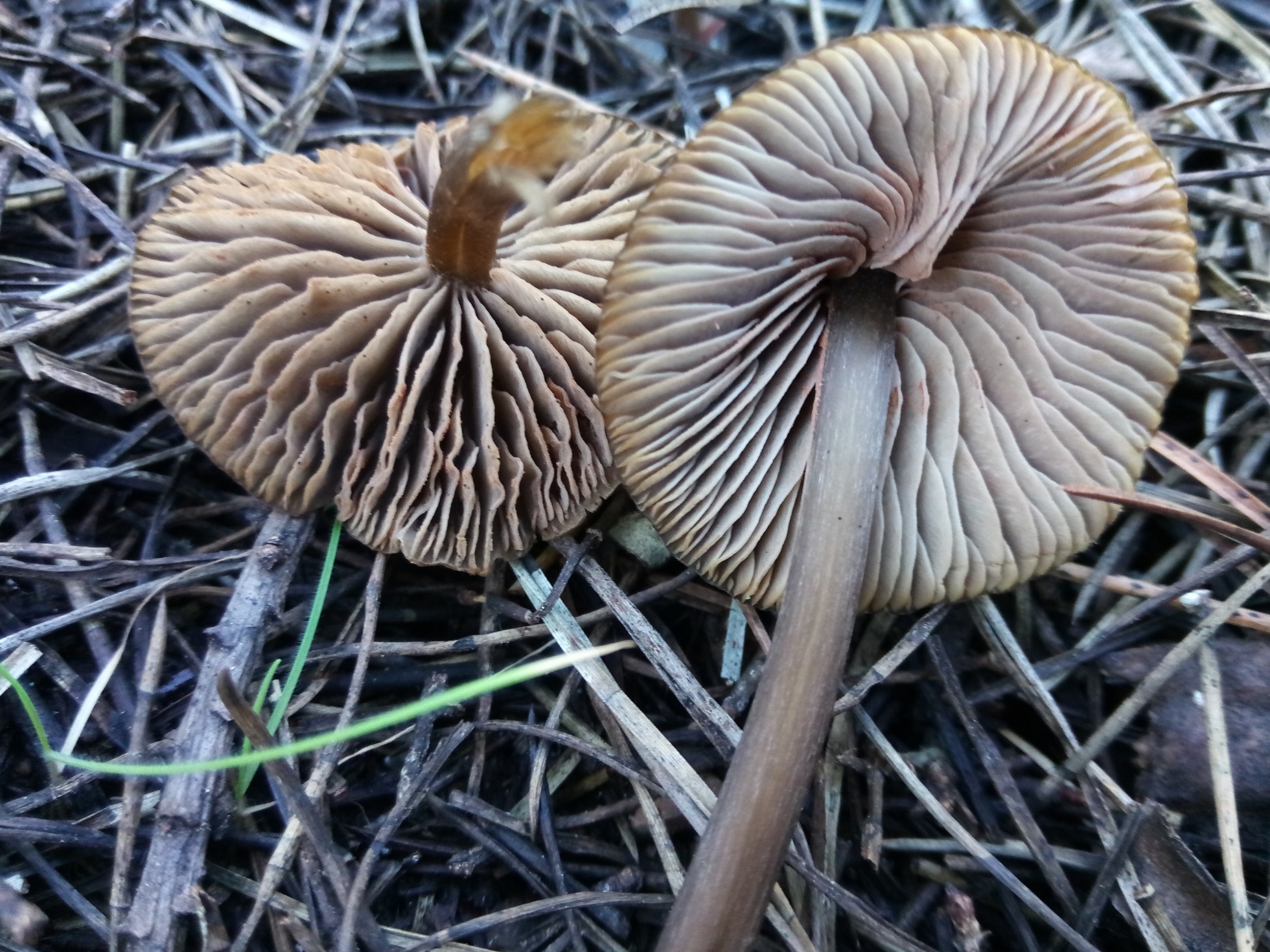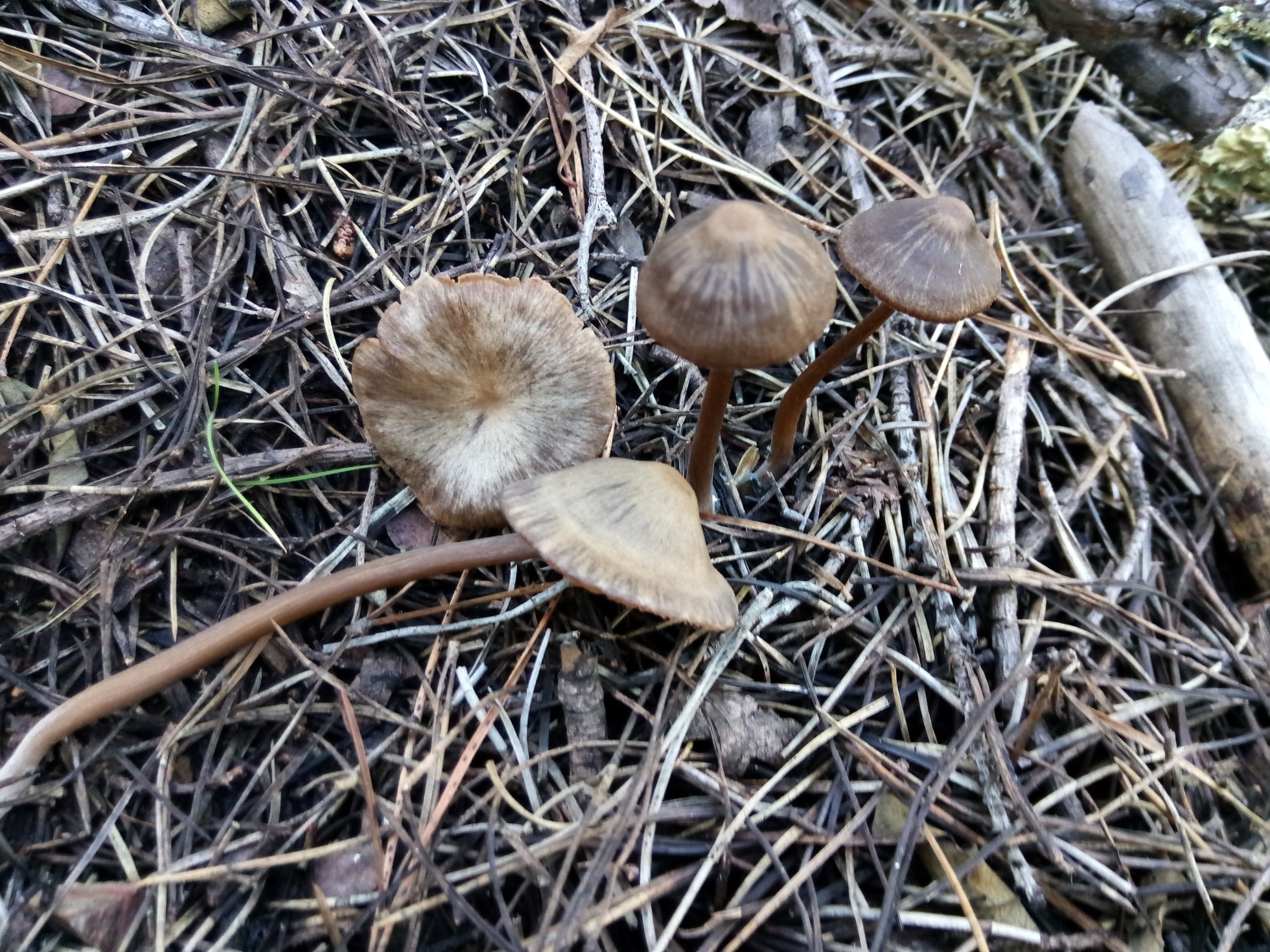 Pues haber si me ayudáis a ponerle nombre a este Entoloma que como se observa crecía en bosque de pinos entre acículas. Con una tamaño de sombre de entre 2-4cm aprox y con la base del pié blanquecina, pié marrón, largo, frágil y algo hueco, cutícula higrófana del color que oscila desde el crema al marrón, carne escasa sin olor apreciable.