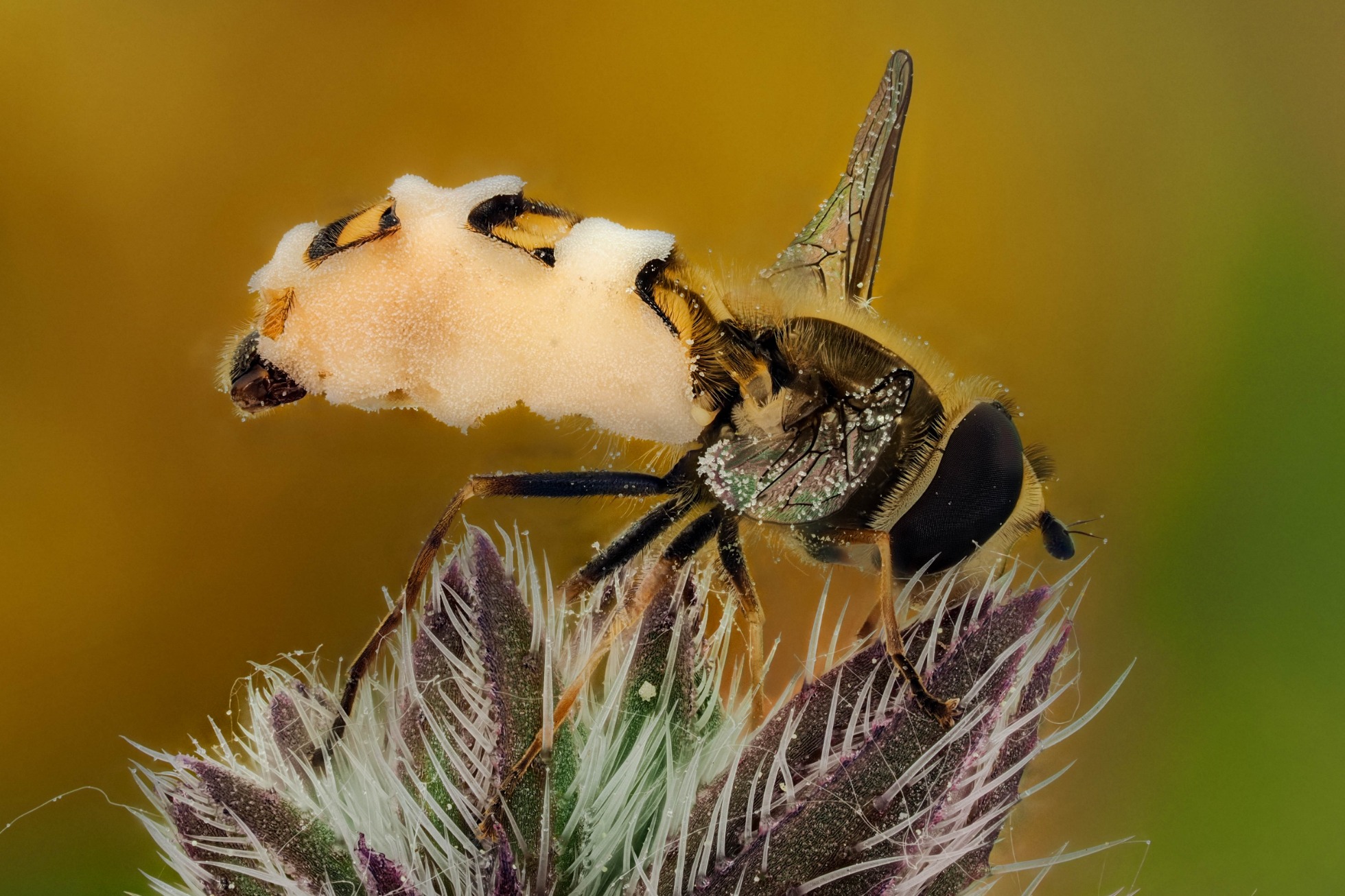 Hola! tras tantos días confinados no me he podido resistir a colgar aquí un hongo que me encontré esta mañana, super interesante, creo que es........ Entomophthora muscae, a falta de mixos........vendrán mejores tiempos, jeje.