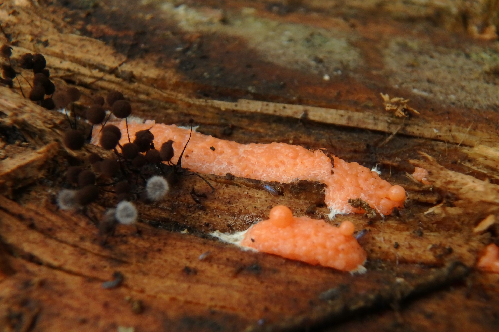 Dejo tres imágenes mías de Dictydiaethalium plumbeum, que he escogido al azar de mis archivos.