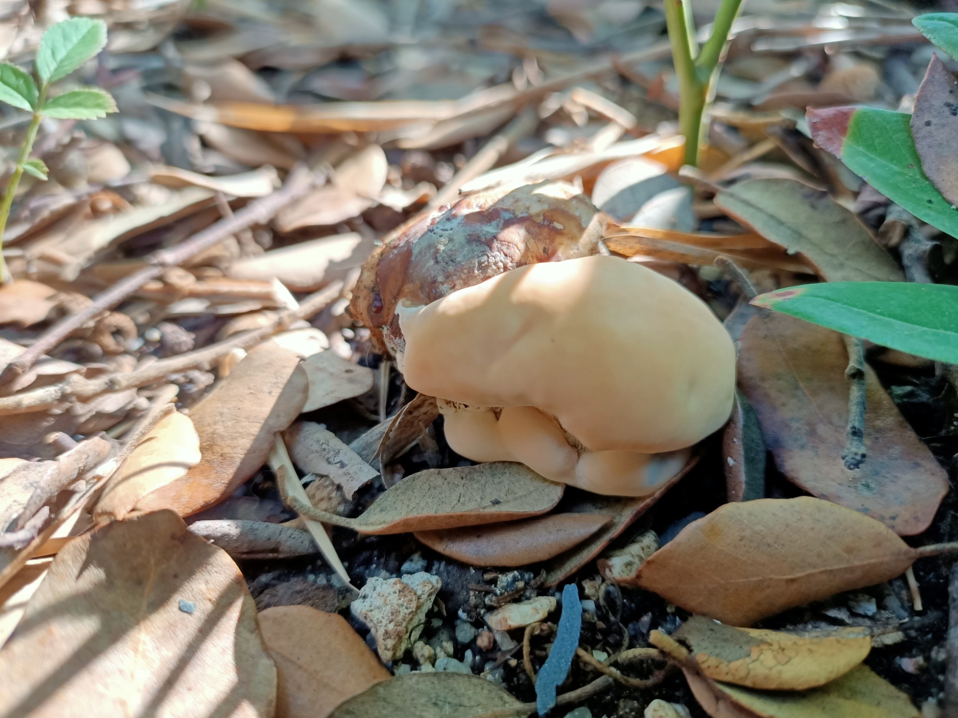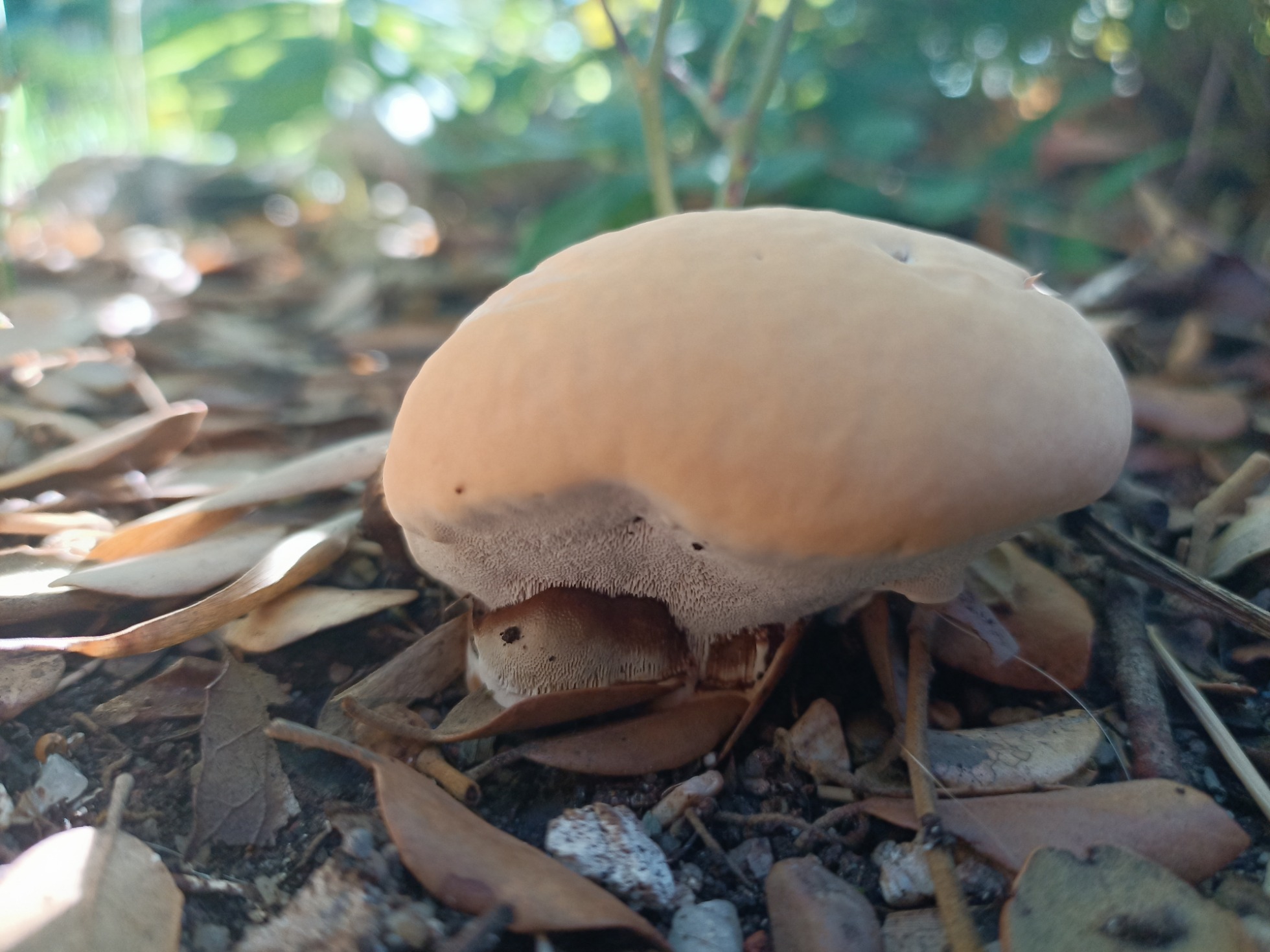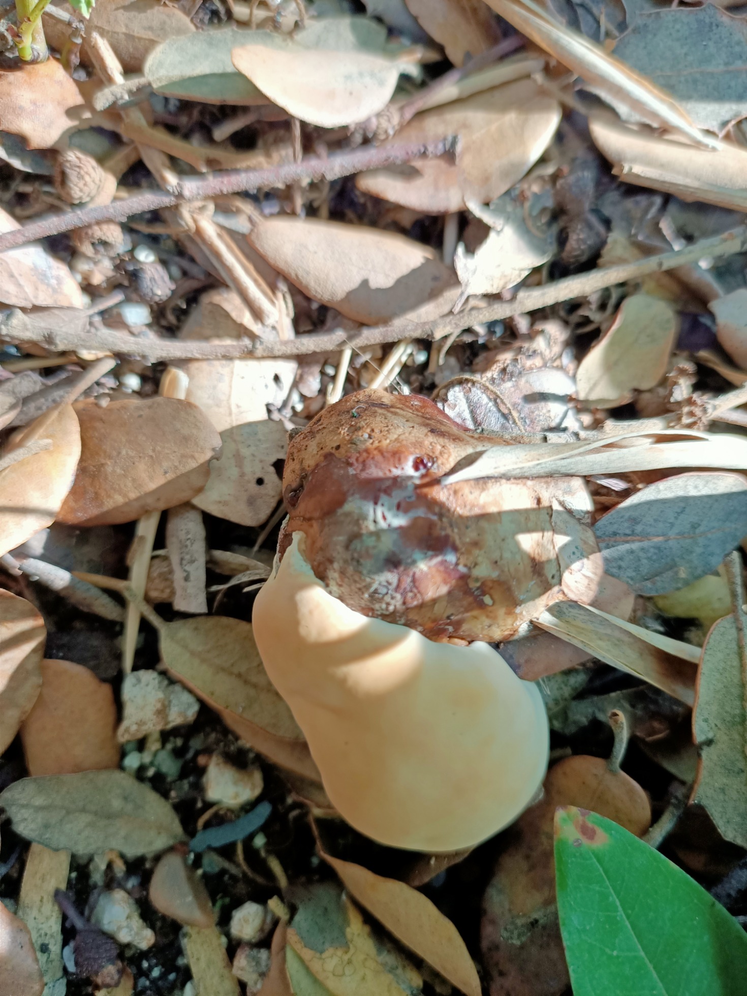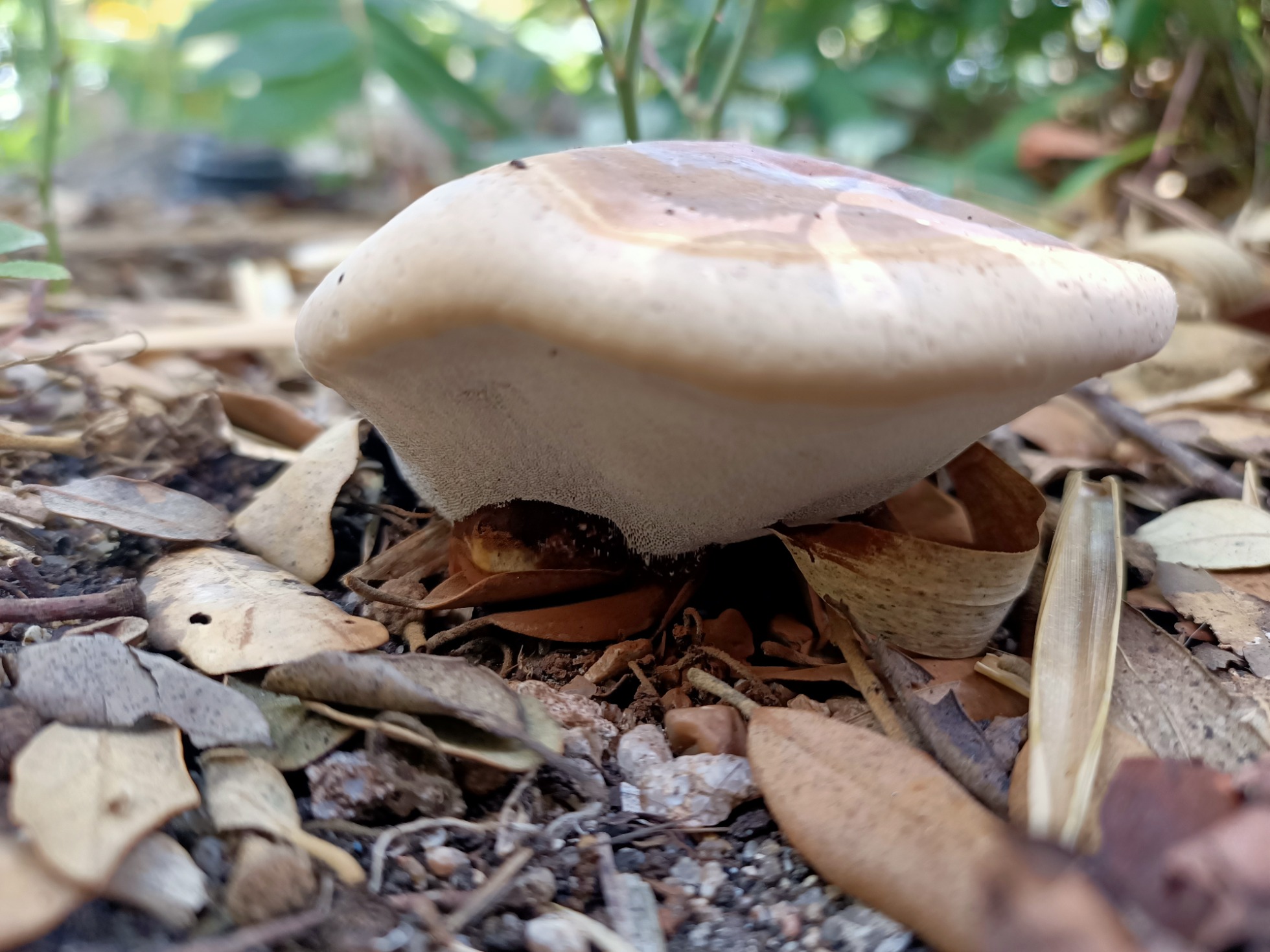 Hola amiguetes, la seta va cambiando de color , ahora tiene unos colores rojizos que me ha hecho pensar que se trate de una Ganoderma lucidum, además hay una encina muy grande justo encima, por lo cual pienso que la seta se puede estar alimentando de alguna rama caída de la encina que esté bajo tierra. He rascado un poco para ver si veo el pie tan característico de la Ganoderma pero parece que está muy enterrada y no quiero interrumpir su crecimiento... Que os parece?