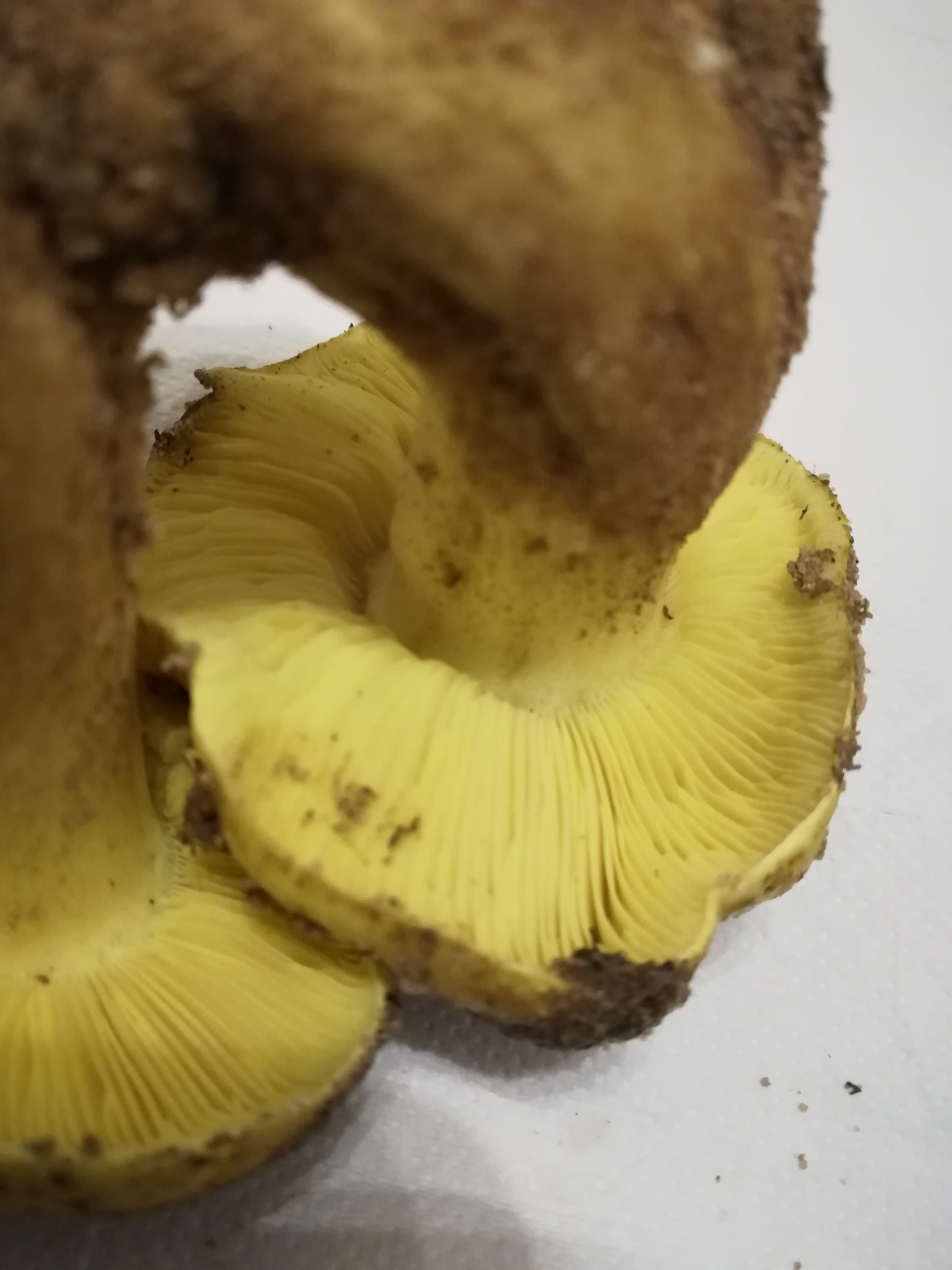 Hola Salvador, con este color amarillo tan patente añadiría también como posible el Tricholoma sulphureum, por si puede servir de ayuda añado unas imágenes mías de cada uno de ellos, así como unos enlaces del Tricholoma sulphureum.