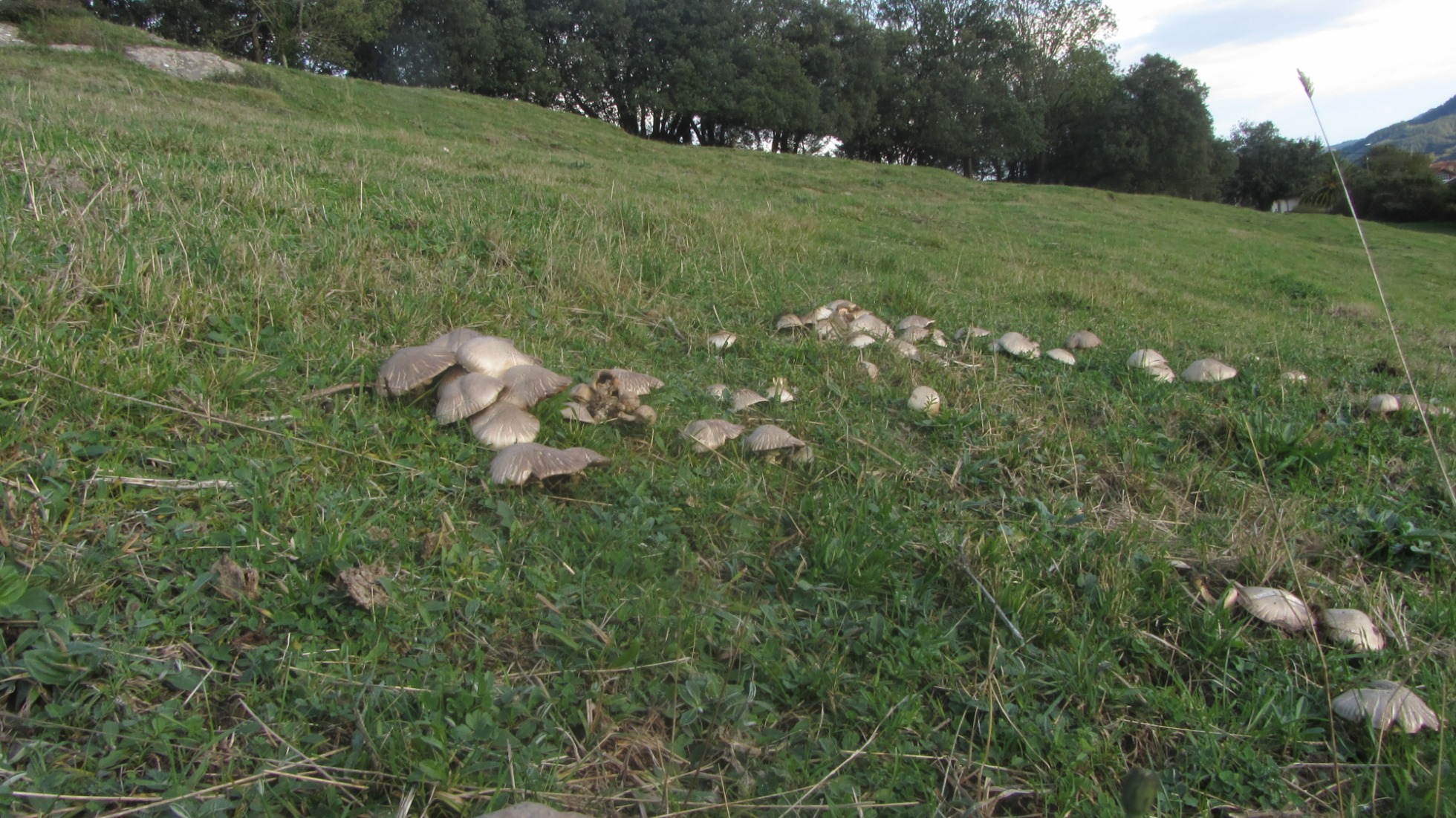 En la zona alta de un prado bastante cerca de una fila de planifolios. Estaban en grupo numeroso.