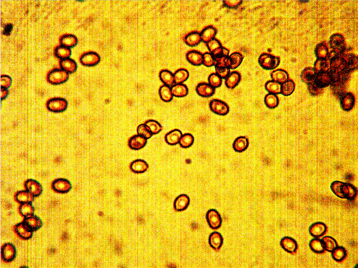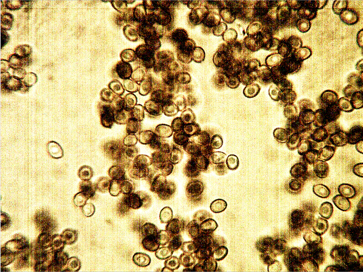Longitud esporas: Media: 5,18 x 3,98 micras. Valor Máximo: 5,73 x 4,35 micras. Valor Mínimo: 4,57 x 3,52 micras. Valores más repetidos de la muestra: 5,29 x 3,90 micras. Muestra de 20 esporas.