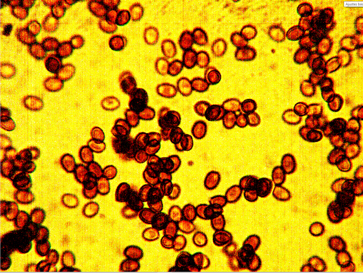 La imagen 7 es de las esporas con los mismos aumentos y con el reactivo Melzer.