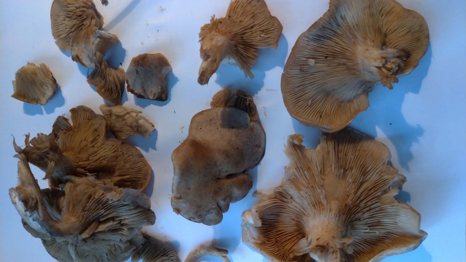 Hola Javier, veo que es tu primer mensaje, bienvenido a Fungipedia, poco podemos hacer con solo una imágen y solo vemos el sombrero de un ejemplar, aun así no me parece ningún Pleurotus, date cuenta que en tus ejemplares por lo que puedo observar todo parece indicar que las láminas se separan con mucha facilidad, esto nos lleva a Lepista, dentro de estas quizás Lepista rickenii o Lepista panaeolus.