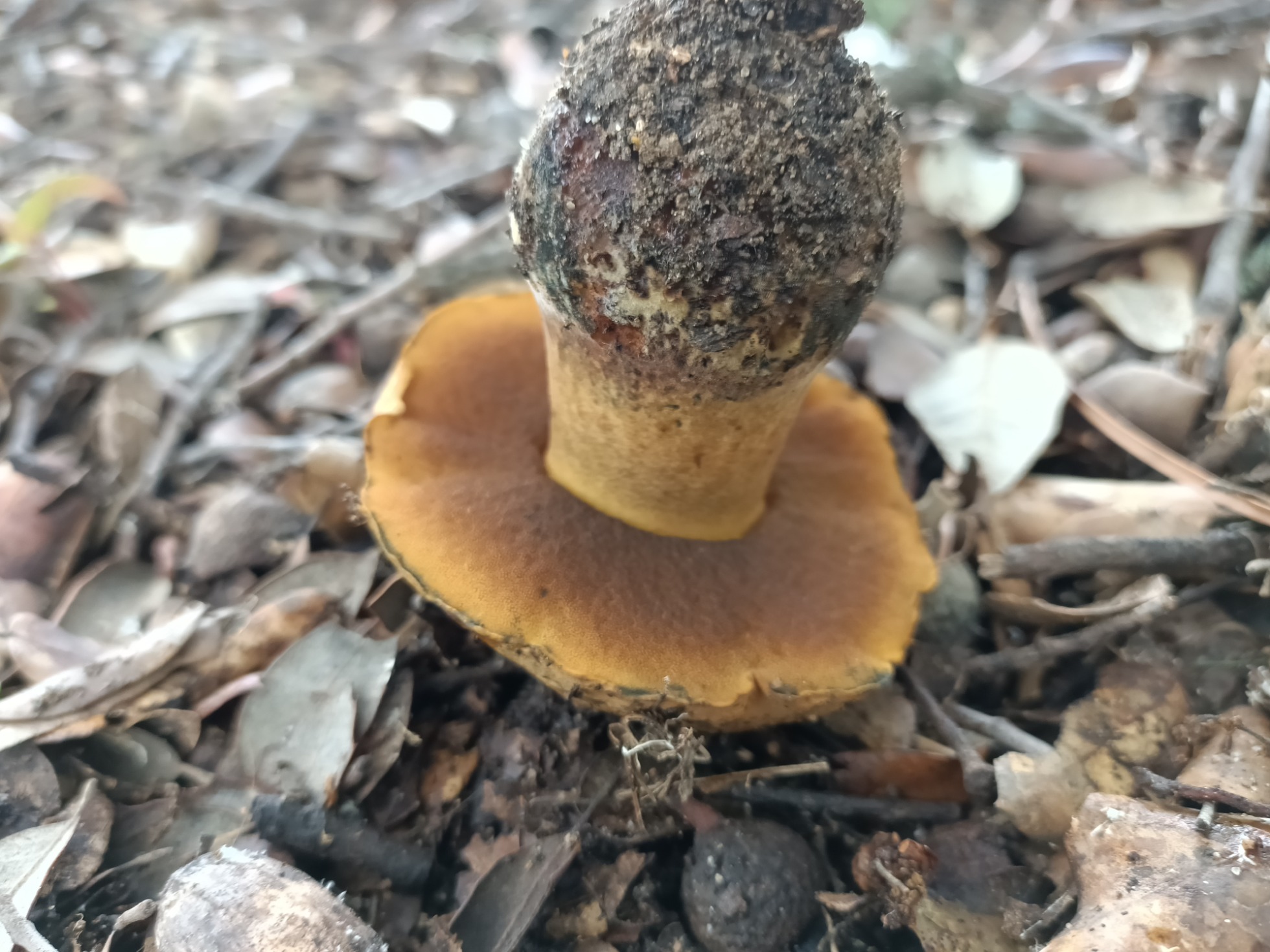 Bajo mis encinas está creciendo otro jovenzuelo, como veis amarillento. Con el tiempo el sombrero oscurece.