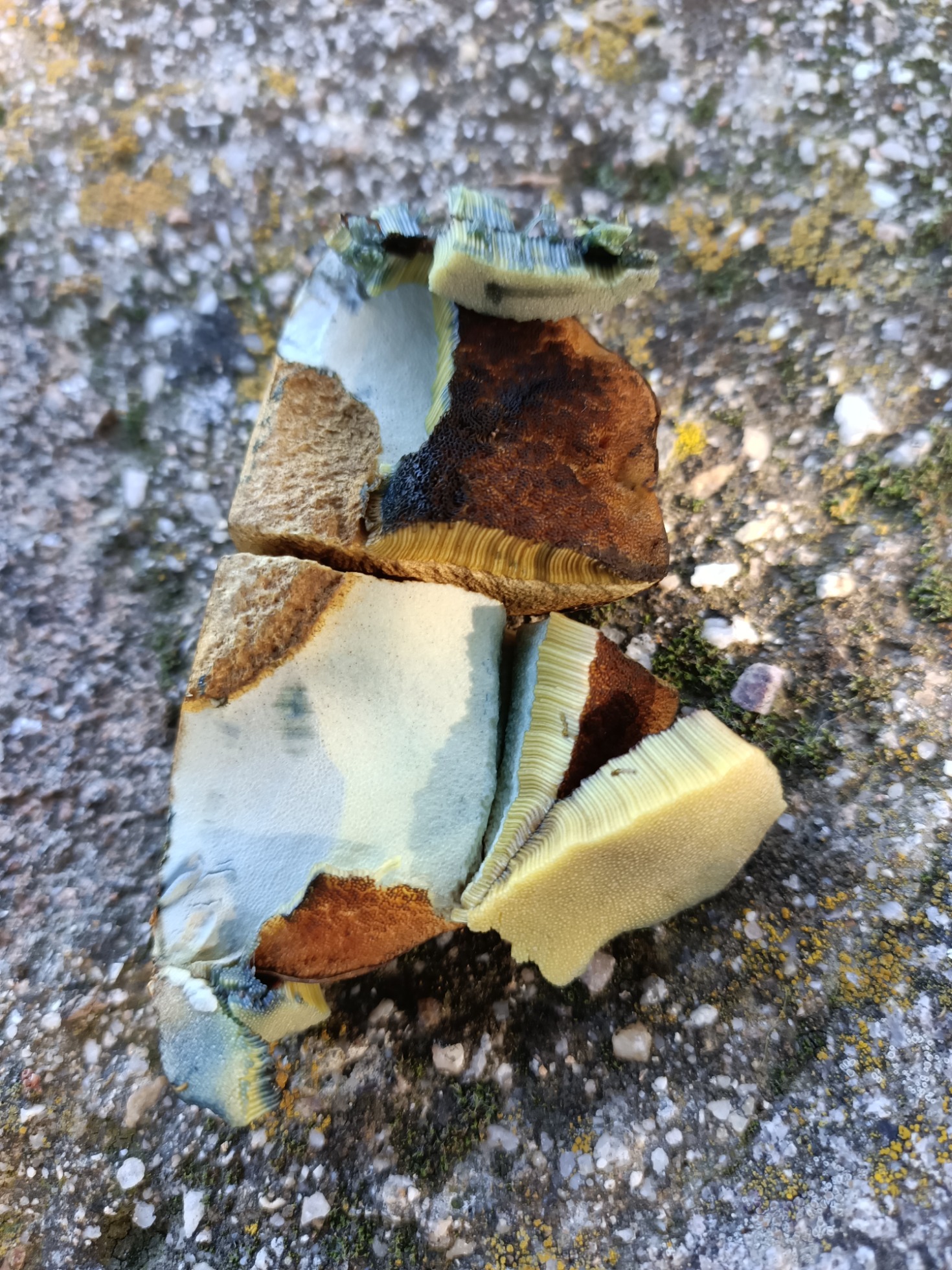 Al despegar los poros del sombrero la superficie es amarilla y vira un pelín a azul con el tiempo
