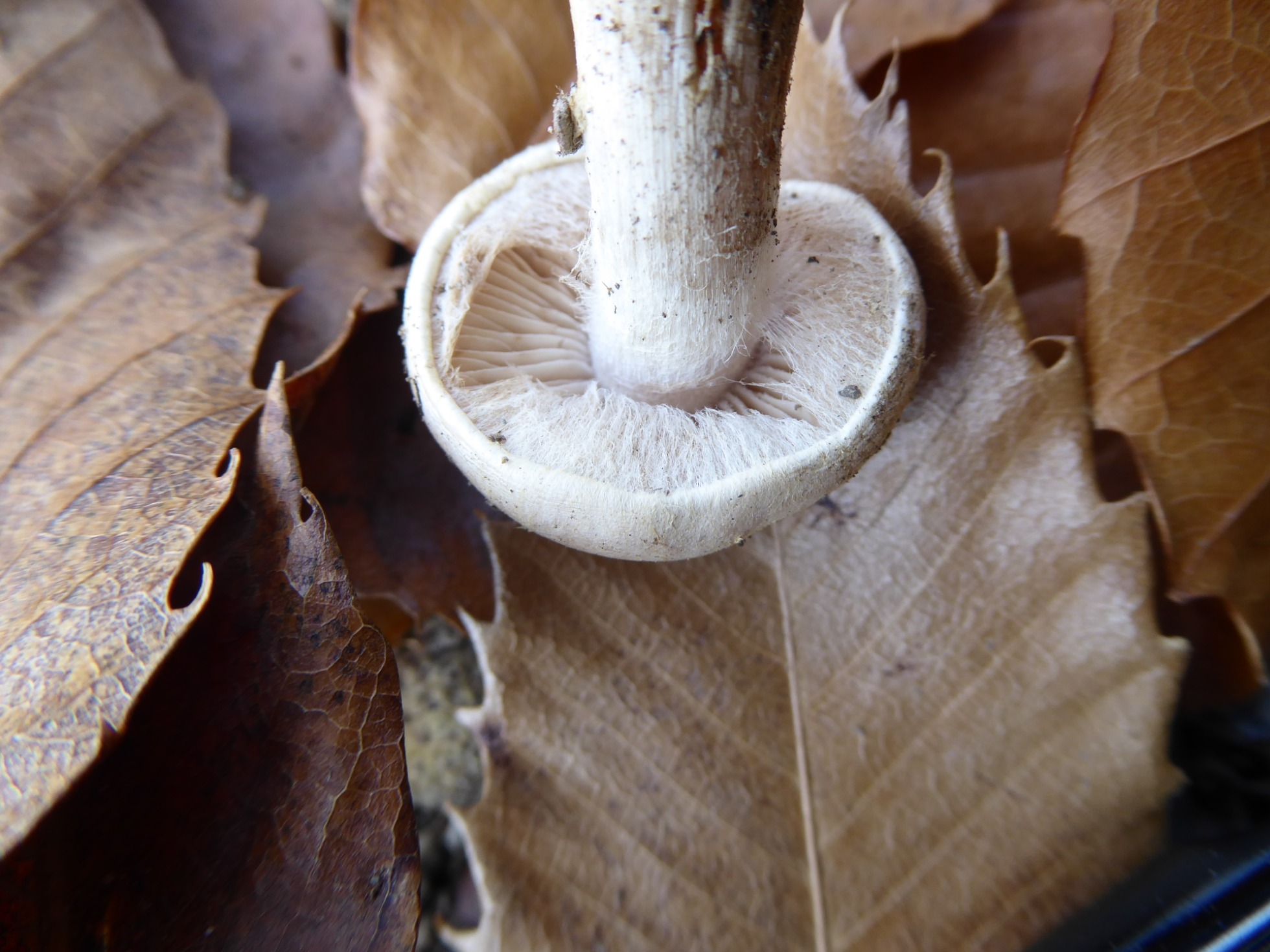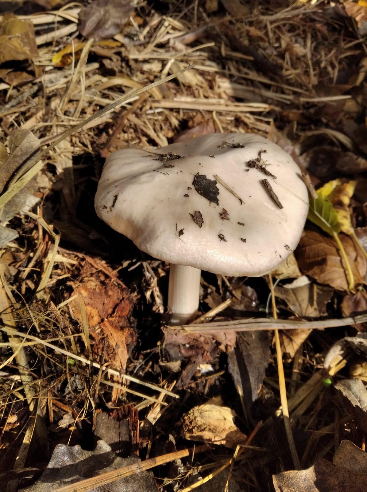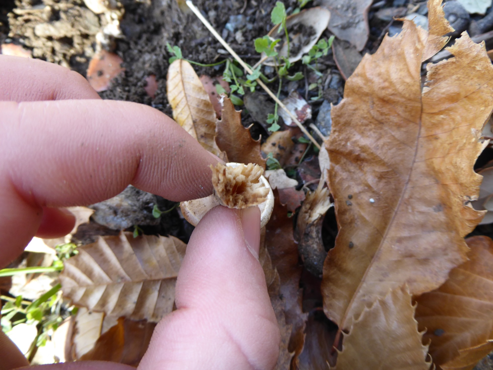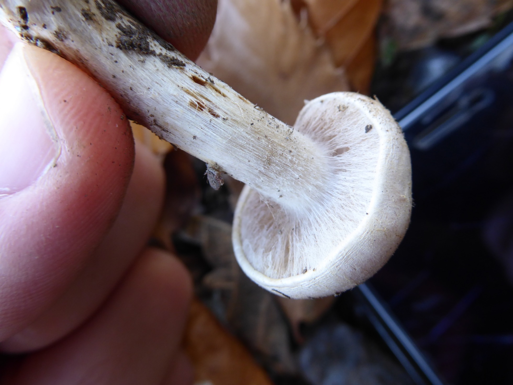 Hola Luana, veo que es tu primer mensaje, bienvenida a Fungipedia, tu seta se trata de un primordio, deberías haberla dejado crecer, con estos restos velares tan marcados puede ser desde un Cortinarius, pasando por Pholiota, y con estos tonos del sombrero hasta la muy abundante Psathyrella candolleana, las he visto en estado primordial con un aspecto muy parecido, en estado adulto conservan estos restos velares en el margen del sombrero.