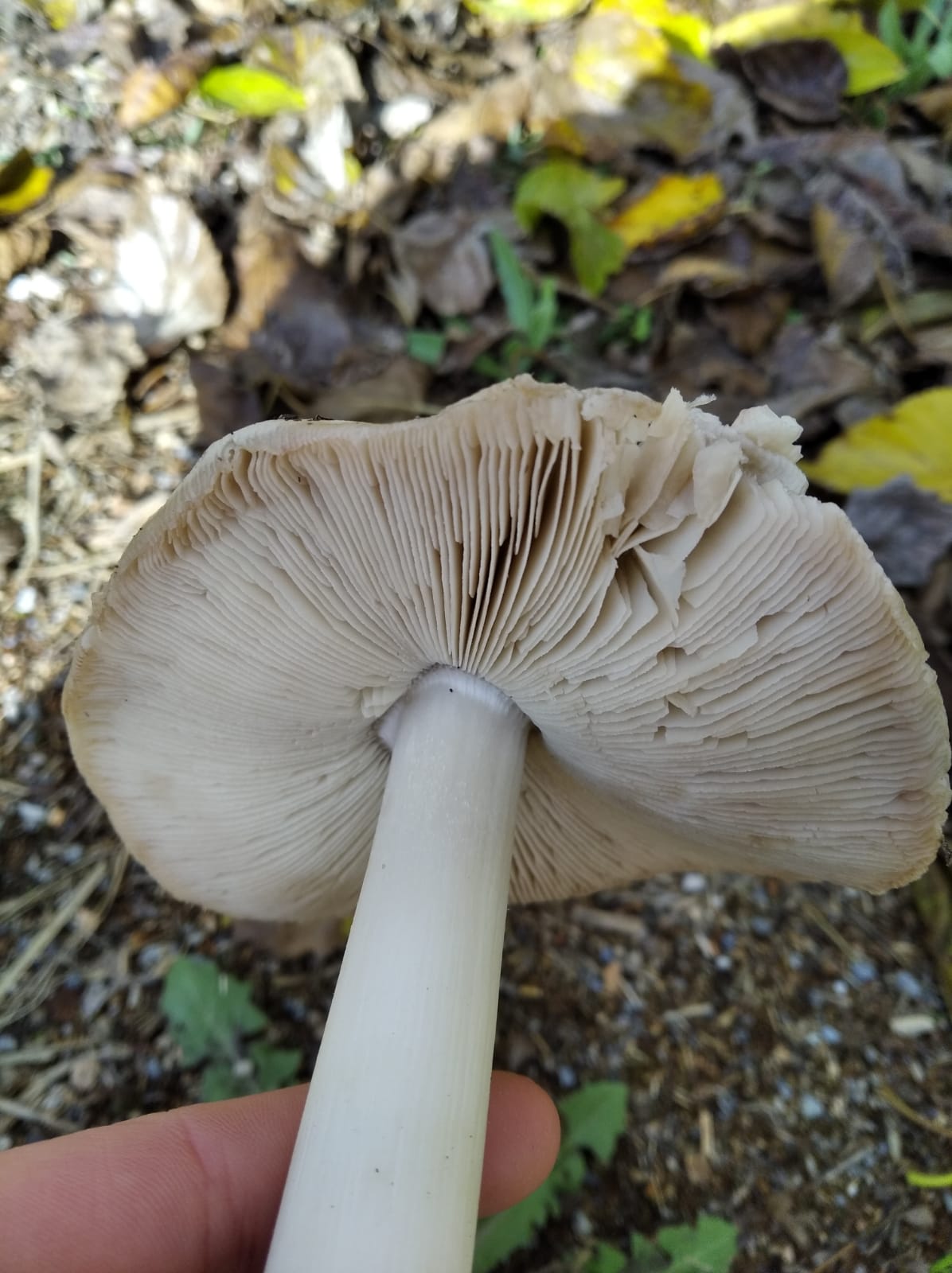 Hola Luana, para poder confirmar lo de Volvariella o Volvopluteus, lo primero que hay que comprobar es si realmente presenta volva, para eso hay que arrancar con mucho cuidado el pie entero, la base del pie no se observa en ninguna de las dos imágenes, además las Volvariellas tienen la esporada de color rosado, y por consiguiente las láminas en los ejemplares adultos deberían adquirir este color, sería muy importante que comprobaras el color de la esporada en masa, es un dato fácil de obtener, se coloca el sombrero boca abajo sobre una cartulina o cristal, se tapa con un vaso y a las 24 horas ya sabremos el color de la esporada. Si en tu caso la esporada fuera de color blanco hasta podría tratarse de una Melanoleuca.
