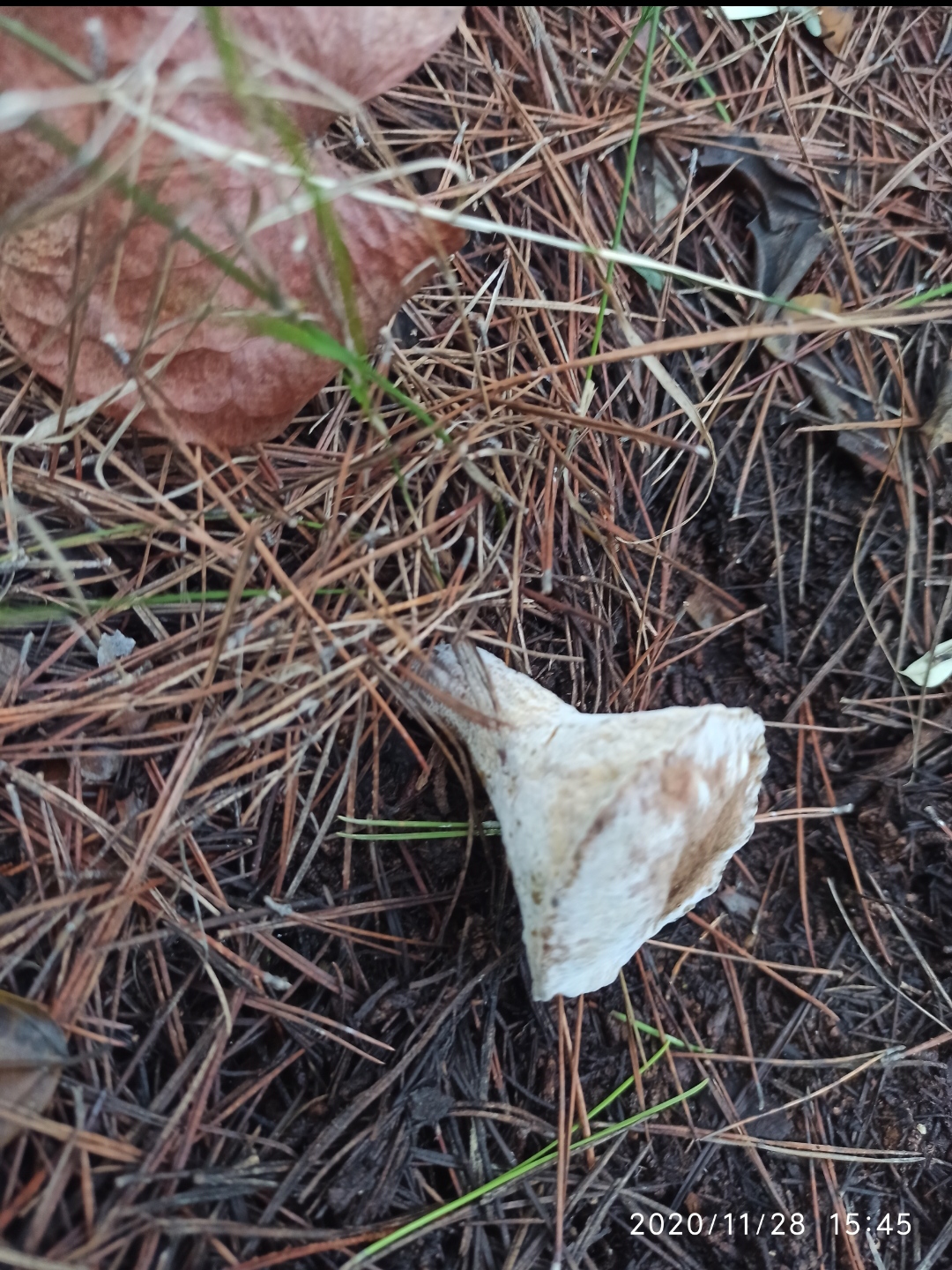 Hola Samuel, el primero se trata de Hygrophoropsis aurantiaca un poco chamuscada, el segundo es un hongo parasitado por Hypomyces, el tercero faltan datos pero podría tratarse de alguno de los Tricholomas blanquecinos.