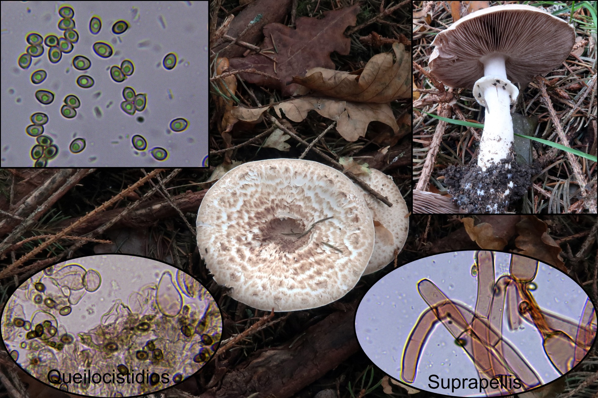 Hola Ángel, la primera no se trata de Amanita pantherina, por la ausencia de anillo alguna de cercana a la Amanita vaginata, la segunda se trata de Agaricus sylvaticus, la tercera parece Sarcodon leucopus, el KOH nos sacaría de dudas, con la cuarta habría que comprobar el color de la esporada, de entrada si que parece Psathyrella, pero estas son complicadas incluso disponiendo de toda la micro, con la Russula no me parece la cyanoxantha, las láminas de la cyanoxantha son lardáceas, irrompibles, no es una Russula para nada frágil y hay muchas de parecidas.