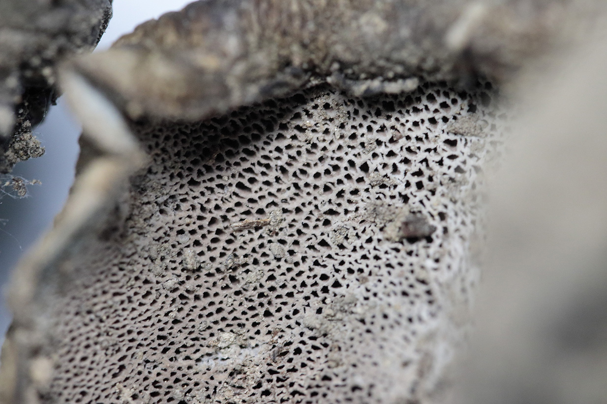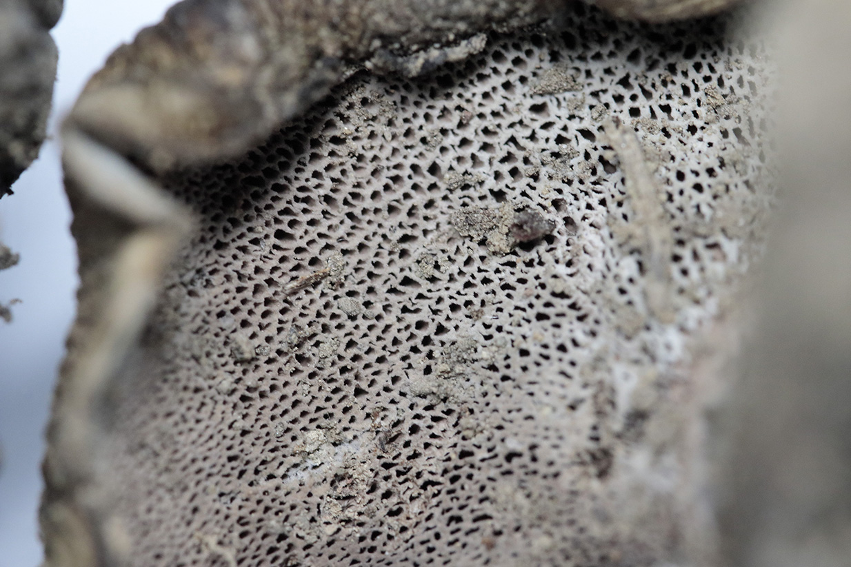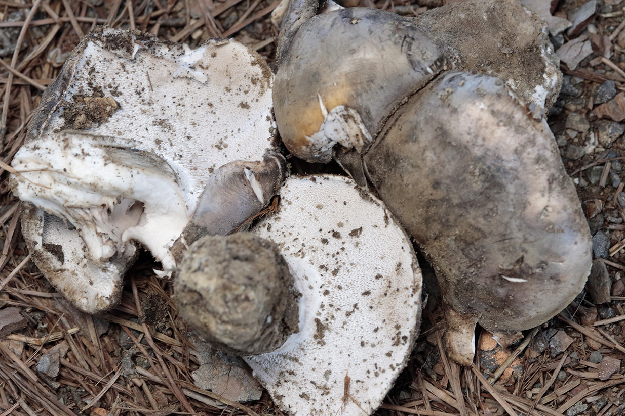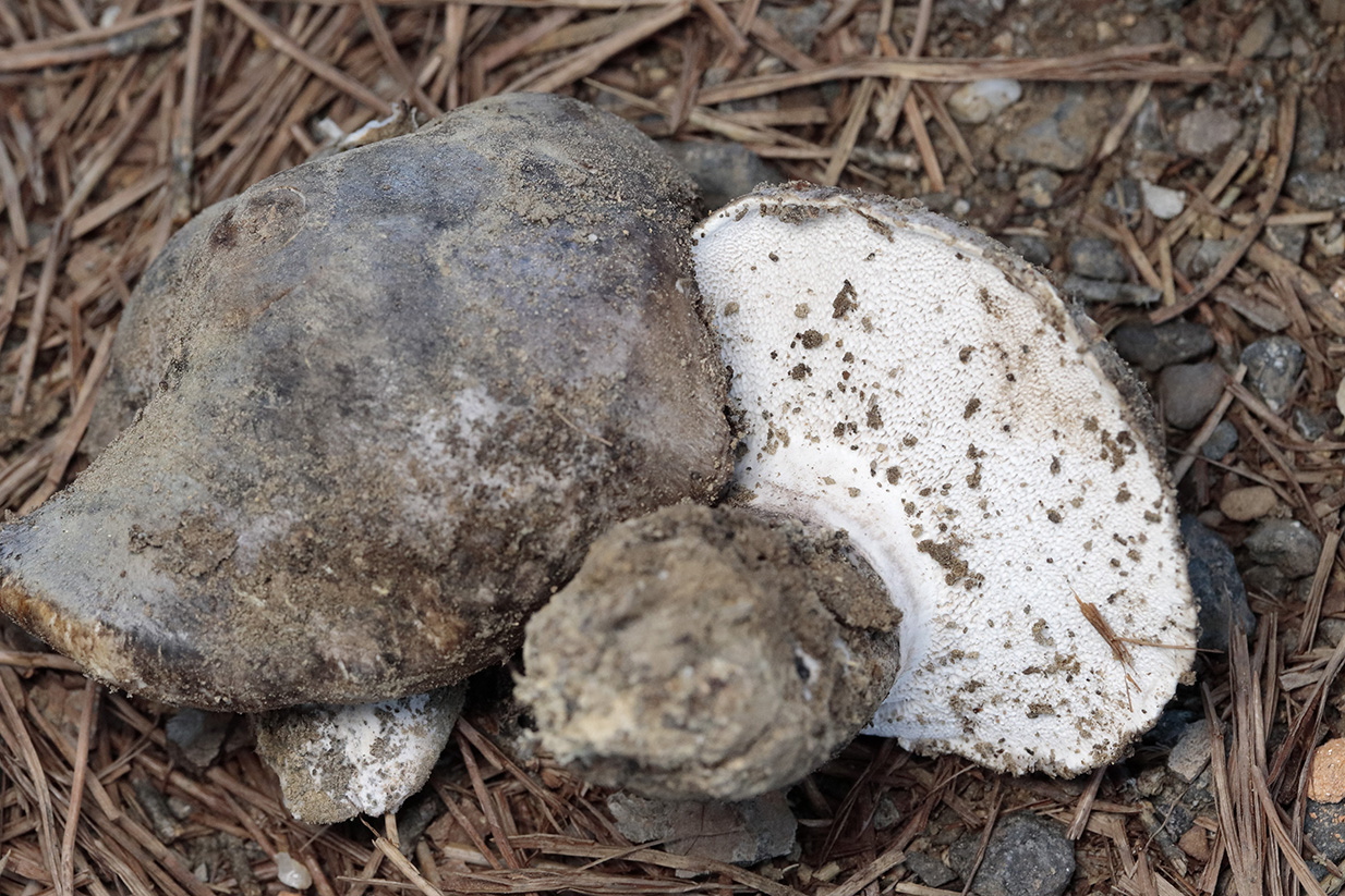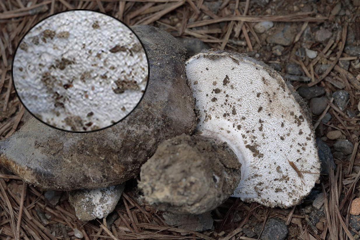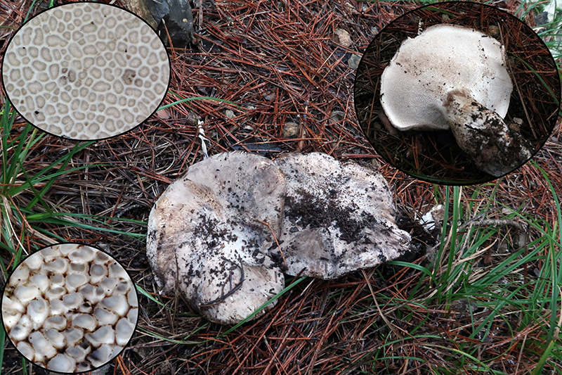 Respecto al supuesto Sarcodon, quizás di demasiado pronto por sobreentendido que se trataba de aguijones. Conservaba un par de ejemplares y podido hacer una foto, y me parecen poros, reconociendo mi ignorancia. Imagino debo suponer que se trata finalmente de Boletopsis leucomelaena. Pongo las imágenes