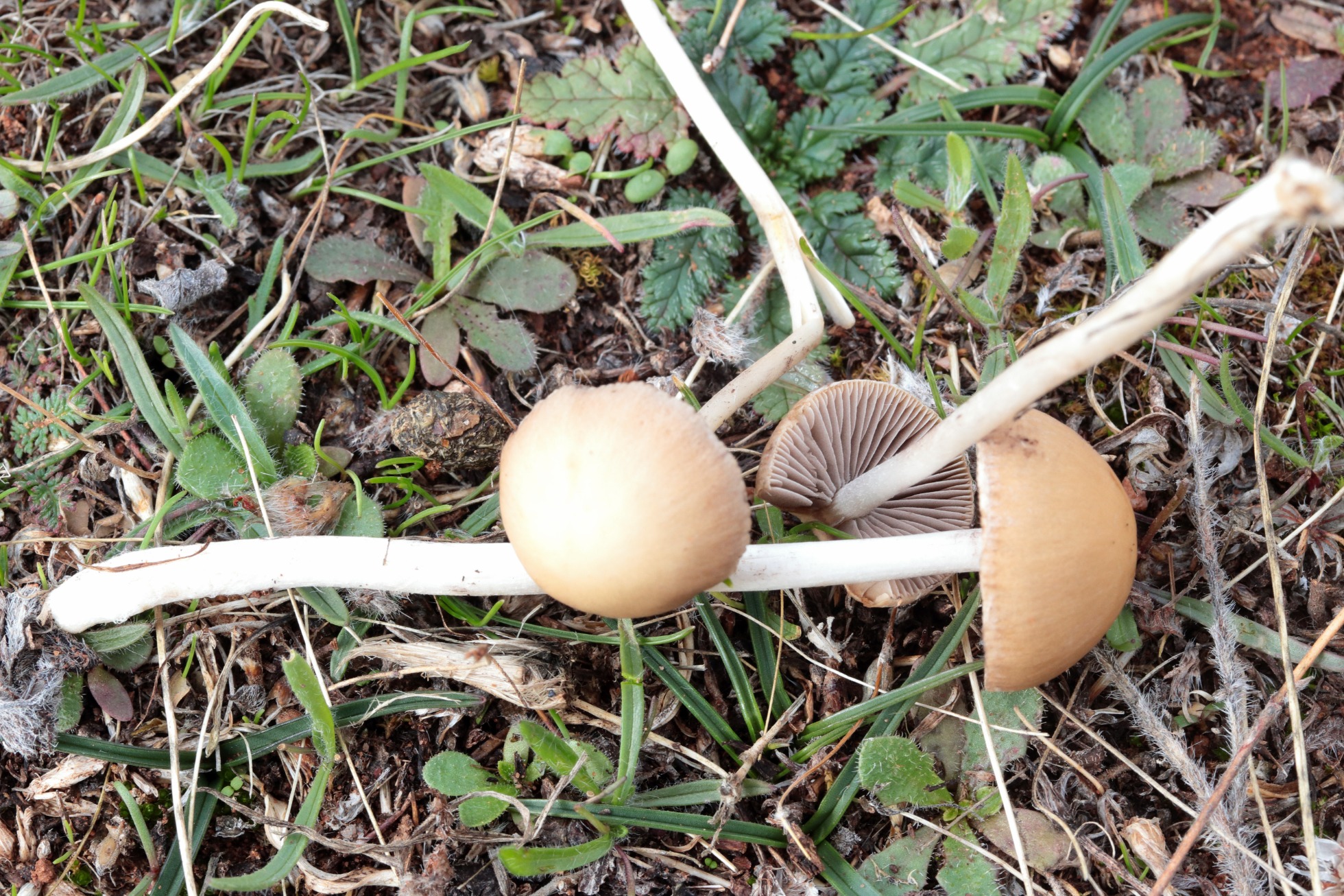 Psathyrella conopilus, no me acaba de cuadrar el color del sombrero y la forma demasiado hemiesférica, pero no se me ocurre otra que conozca. De mediados noviembre en zona herbosa