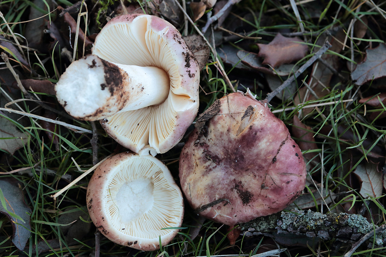 Russula cyanoxantha. Hace dos semanas debajo de una encina. Semienterradas. No pica. Bastante frágil. He leído que sale por el Norte, está cogida sin embargo en la parte Sur de Ciudad Real.